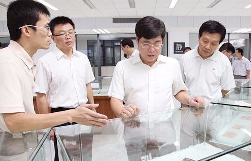 时任东莞市政协主席刘树基(右二)视察我院图书馆
