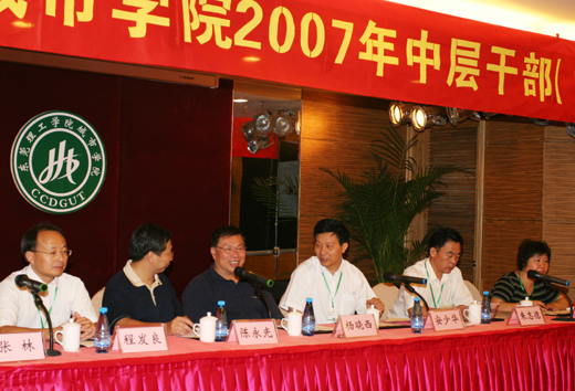 2007年10月15日,华中科技大学文华学院常务副院长杨传谱教授率领的学习交流团到我院进行参观考察、学习交流。东莞理工学院城市学院党委书记朱志德、行政副院长张林、办公室主任王玉、人事处处长夏勇、就业办公室副主任江小卫等会见了