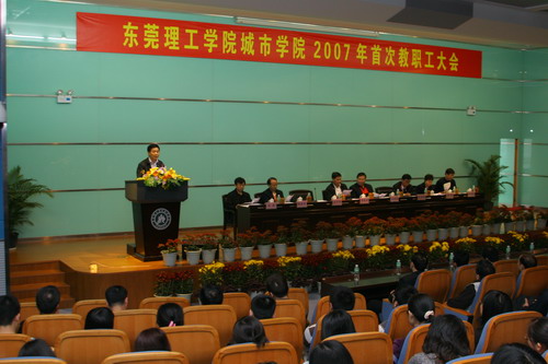 3月15日,学院在学术报告厅召开全院教职工大会,对2007年的工作进行全面的安排部署。会议号召广大教职工要有争创一流的思想意识,进一步落实和完成今年的各项工作目标,力争一年更比一年好。 东莞理工学院党委书记周致纳,东莞理工