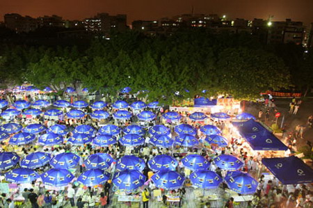 4月23日晚上8点,城市学院管理系第一届”百事可乐”工商模拟市场在饭堂前广场拉开了帷幕,院党委副书记朱冰、教务处处长邓成良、学生处处长章德胜等出席开幕式并剪彩。 开幕式结束后,现场共92个学生摊位正式营业。据悉。为期四天
