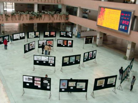 12月7日,我院艺术设计专业师生作品在院行政楼大厅隆重展出。这次联展共展出师生作品110幅,其中有游香平老师的工笔花鸟画,林岩老师的服装设计,王宁和吴宇老师的艺术设计以及学生的习作。 这些作品色彩明快,线条流畅,立意新颖