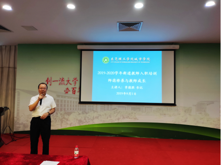章德胜书记作了“师德修养与教师发展”专题主讲。他希望新老师们不忘初心,牢记使命;立足本职,教书育人;志存高远,爱岗敬业;创新立德,争做“四有”好老师;做学生的领路人,当学生健康成长的指导者和引路人;以主人翁的态度投身学校各项发展事业,为学校改革发展奉献智慧和力量。