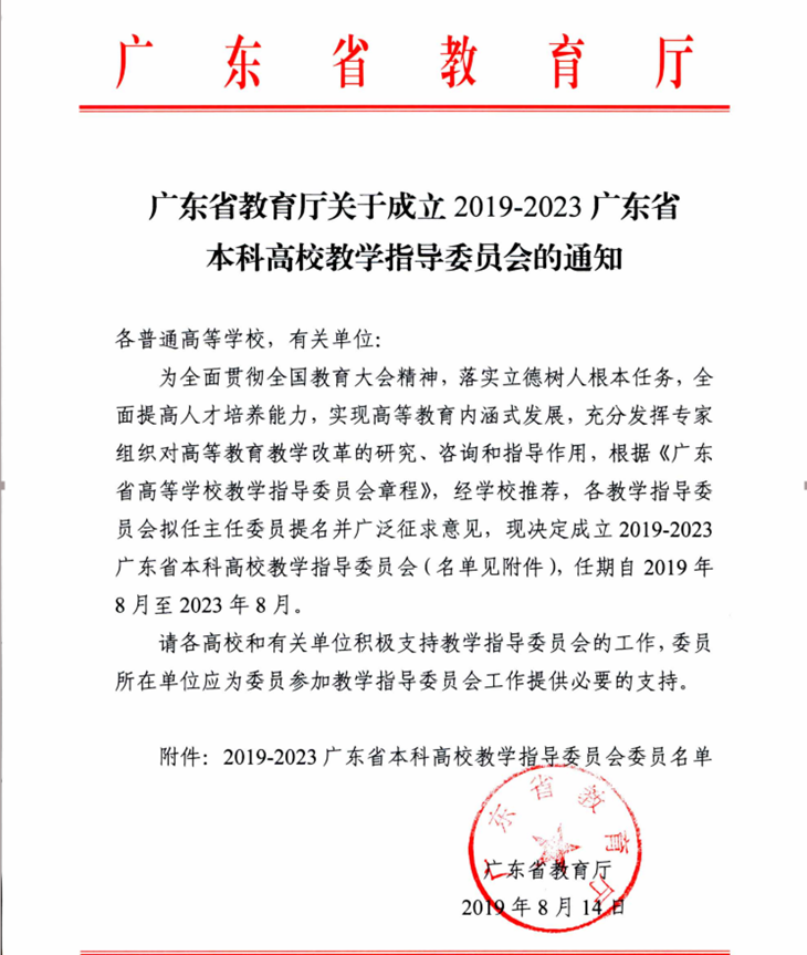 据介绍,省教育厅组建2019-2023年广东省本科高校教学指导委员会旨在全面贯彻全国教育大会精神,落实立德树人根本任务,全面提高人才培养能力,实现高等教育内涵式发展,充分发挥专家组织对高等教育教学改革的研究、咨询和指导作用。本届教学指导委员会委员任期为4年。