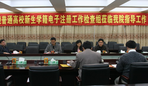 教务处处长邓成良教授向检查小组汇报了我院的总体情况,以及学籍学历管理政策的执行情况,汇报了我院07年新生学籍电子注册工作的完成情况,并对检查小组提出的相关问题作了详细的解答。