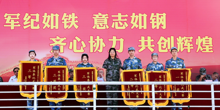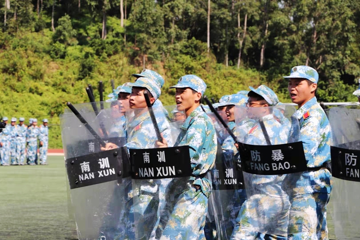 汇报表演过程中,受训新生进行了格斗术、盾牌反恐防暴、军体拳、匕首操、海军旗语等表演,赢得了观众热烈的掌声。