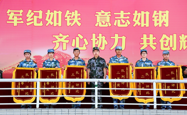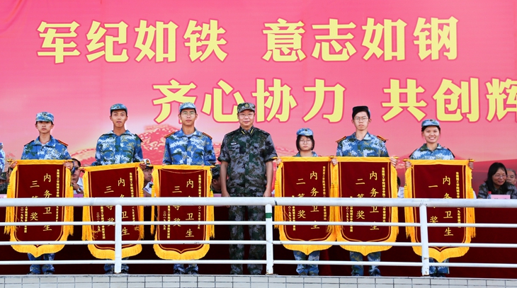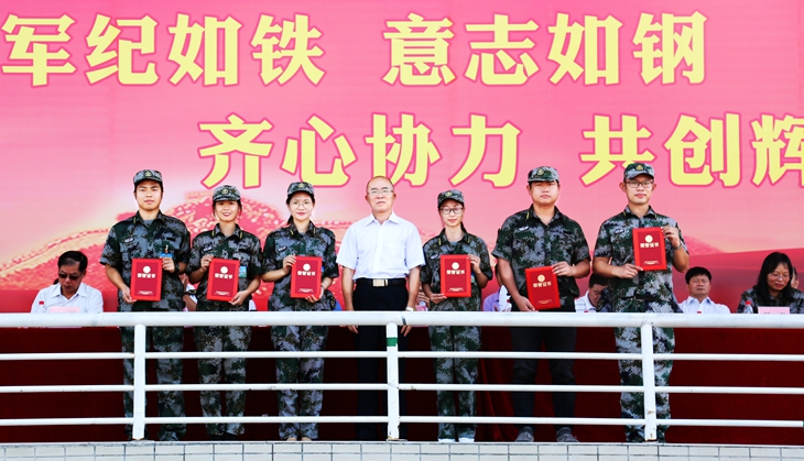后勤保卫处处长王锦锋宣读了《关于表彰2019级新生军训先进集体及先进个人的决定》。大会对在军训期间表现突出、成绩优秀的集体和个人进行了表彰。王卫平、高香林、黄兢、周庆等校领导分别为受表彰集体和个人进行了颁奖。