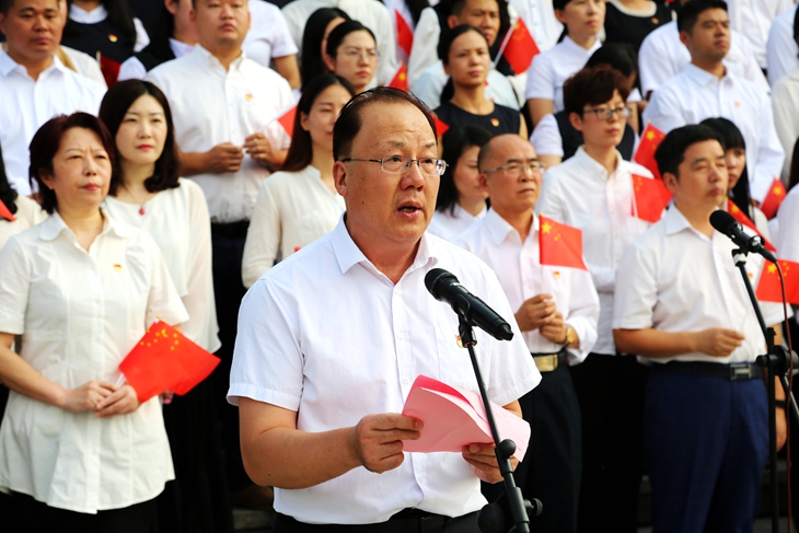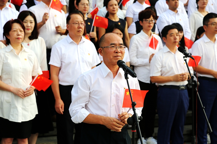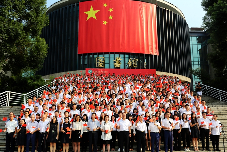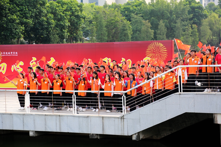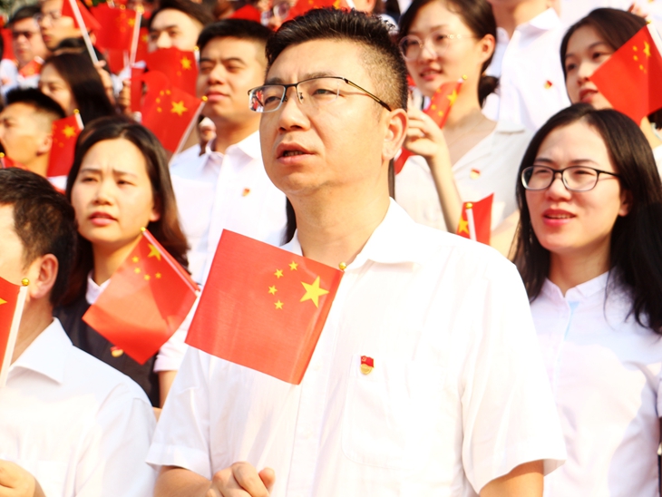 章德胜书记号召全校师生以奋发有为的精神状态、真抓实干的工作作风,勇于创新、开拓进取,朝着中华民族伟大复兴的光辉彼岸,继续破浪前行!用嘹亮的歌声把最美好的祝福送给华夏大地,祝愿伟大的祖国更加繁荣富强。