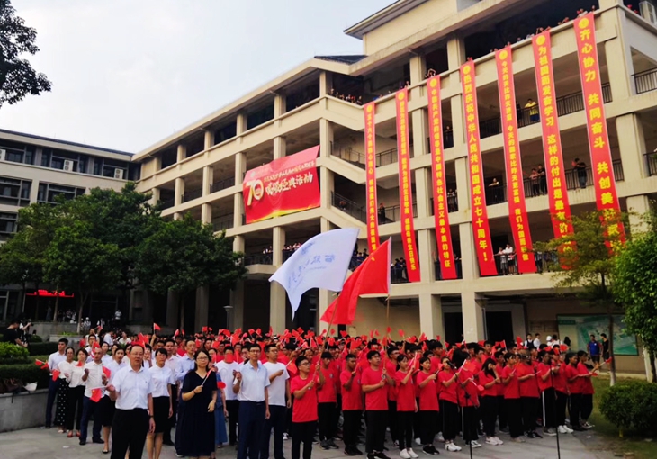 红色的海洋沸腾了,响彻校园的歌声,唱出了全校师生的款款爱国深情!