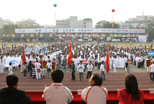 为期两天的城市学院2007年田径运动会12月1日胜利闭幕。下午5时,运动会在田径场举行了隆重的闭幕式。出席闭幕式的领导和嘉宾有:东莞理工学院副院长、城市学院院长安少华教授,城市学院党政领导朱志德、程发良、朱冰、张林,院督学林世俊教授,各系部负责人以及广东太阳神饮用水有限公司东莞分公司经理助理、校友袁月英女士。