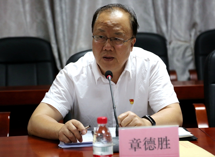 党委书记章德胜主持会议,对学校主题教育开展以来的阶段性工作进行了总结和回顾,对贯穿主题教育的学习教育、调查研究、检视问题、整改落实等四个方面进行了工作部署。