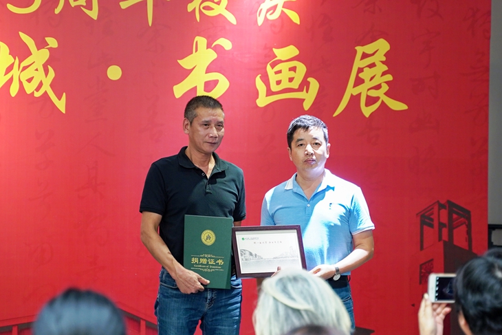高香林副校长向东莞市信义实业投资有限公司董事长李伟强颁发了捐赠证书、为陈宝林先生颁发了收藏证书和纪念品。