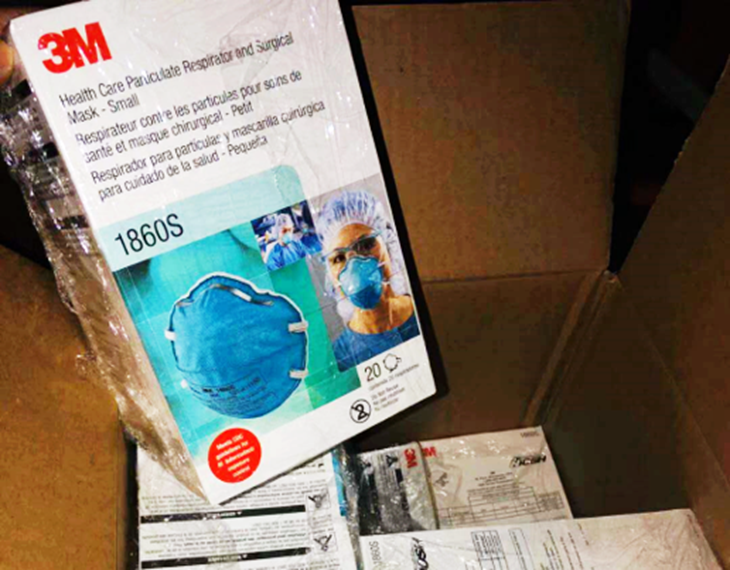 (图为金贸学院支援红安县医院的医用3M口罩)