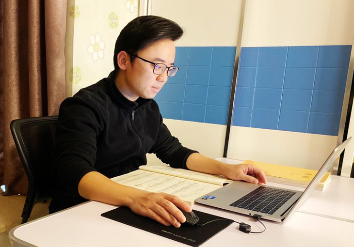 在线上教学开始之前,我通过网络方式向多位音乐名家学习,为新学期我的线上教学注入了新营养。科学结合音乐表演专业特性,我在大班课的线上教学是采用企业微信直播模式,通过不断的测试和改进最终能实现在课中把知识点、乐谱、音频文件、视频文件等合理有序地呈现在大部分学生手中的屏幕上,我在声乐小组课上则采用企业微信会议模式,并且在声乐小组课中同时借助“全民K歌”手机App让学生实现带音响效果的演唱,从而提高授课质量,现正继续学习和研究如何把线上课上得更好。