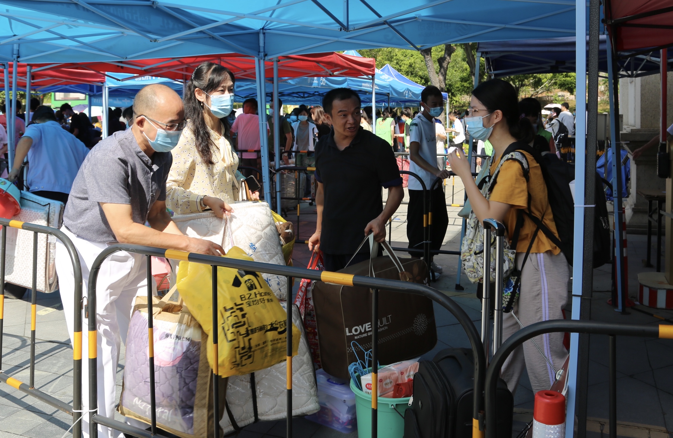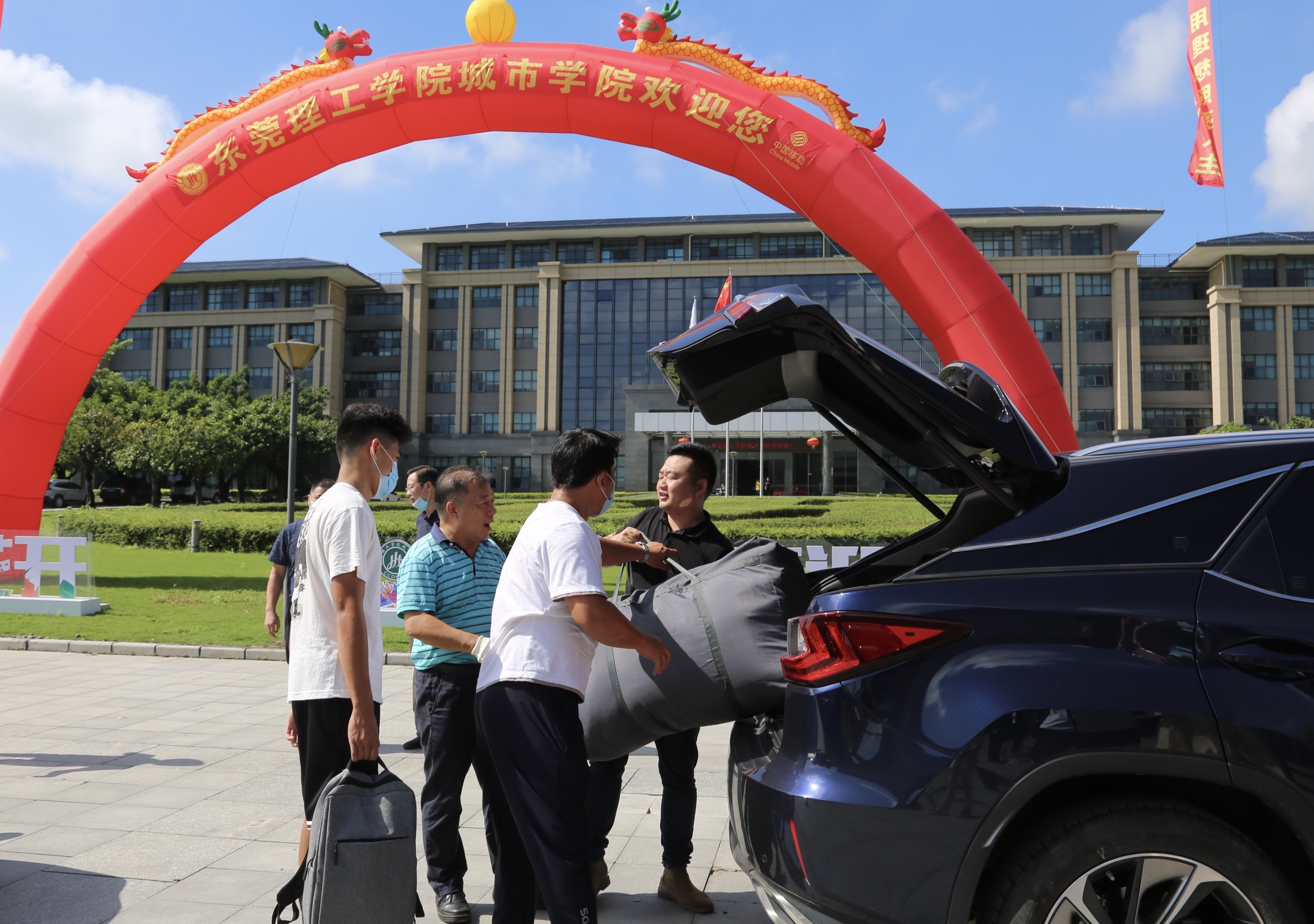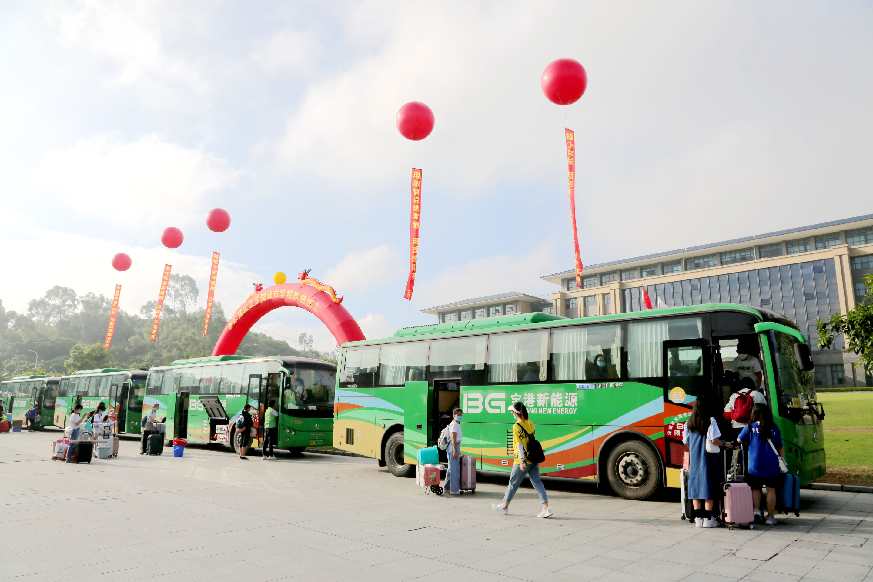 由于今年疫情防控期间,学校采取严格管理,新生们在企业微信上进行了认证,需要独自进校,家长送学生报到只能送到校门口。许多学生从外地赶来,大包小包不太方便,但来到学校,学生们都不用担心了,打消了顾虑。今年学校与中国移动东莞分公司合作,中国移动东莞分公司赞助了四辆新能源“绿色大巴”,大巴在校园内从校门口到学生宿舍不断的循环。学校安排了许多志愿者,老师,热心地帮助学生把行李从校门口放到车上运送到宿舍楼下,许多新生都表示,太方便了。