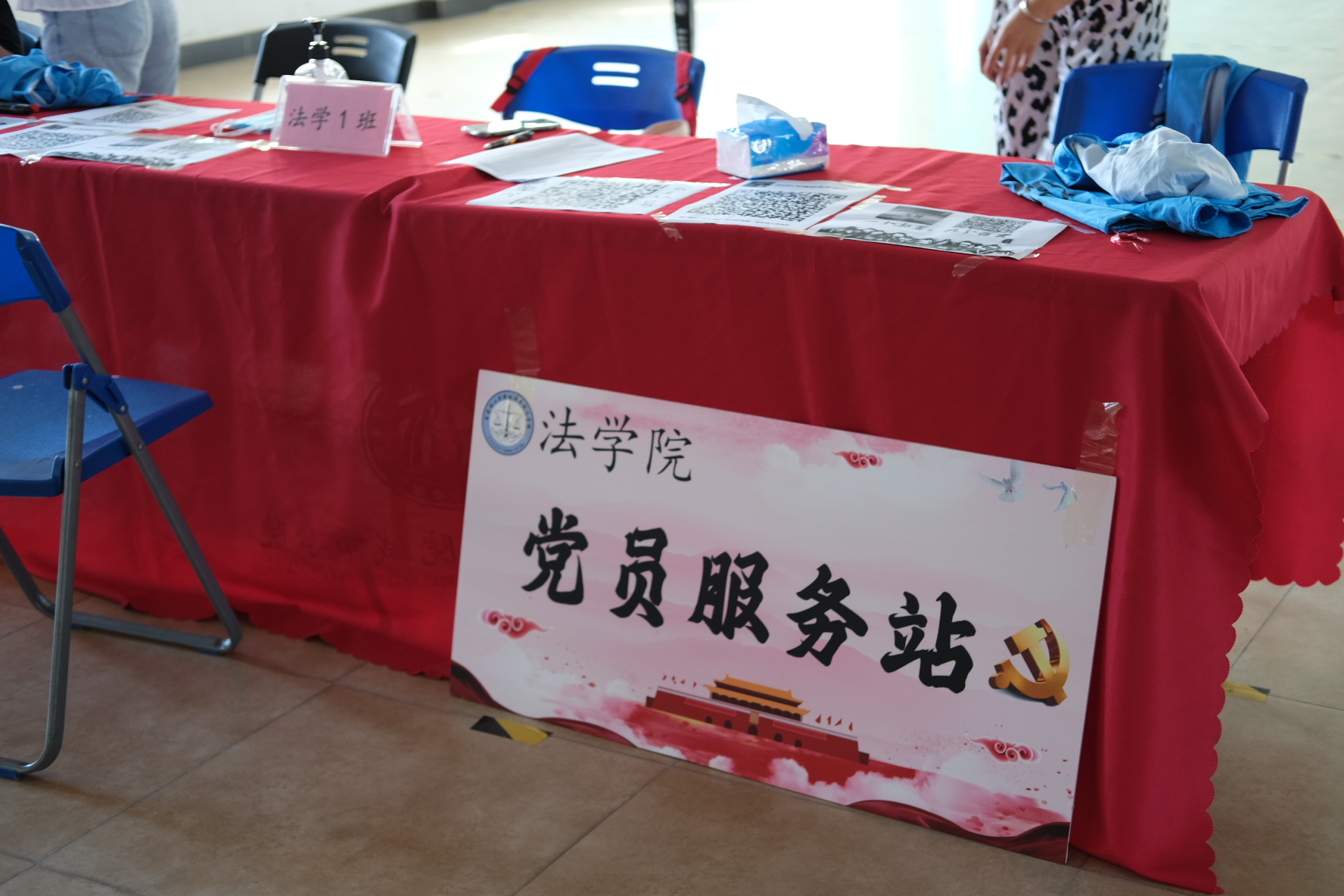 今年各学院在迎接新生,营造各学院特色上也是亮点纷呈,尽展学院风采。金融与贸易学院在学院迎新处,设置迎新板,并把阶梯打上”金贸“两字,法学院设立了”党员服务岗“,充分发挥党支部战斗堡垒作用和党员先锋模范作用,为广大新生及家长提供了热情周到的服务,拉近了新生、与学院的距离。