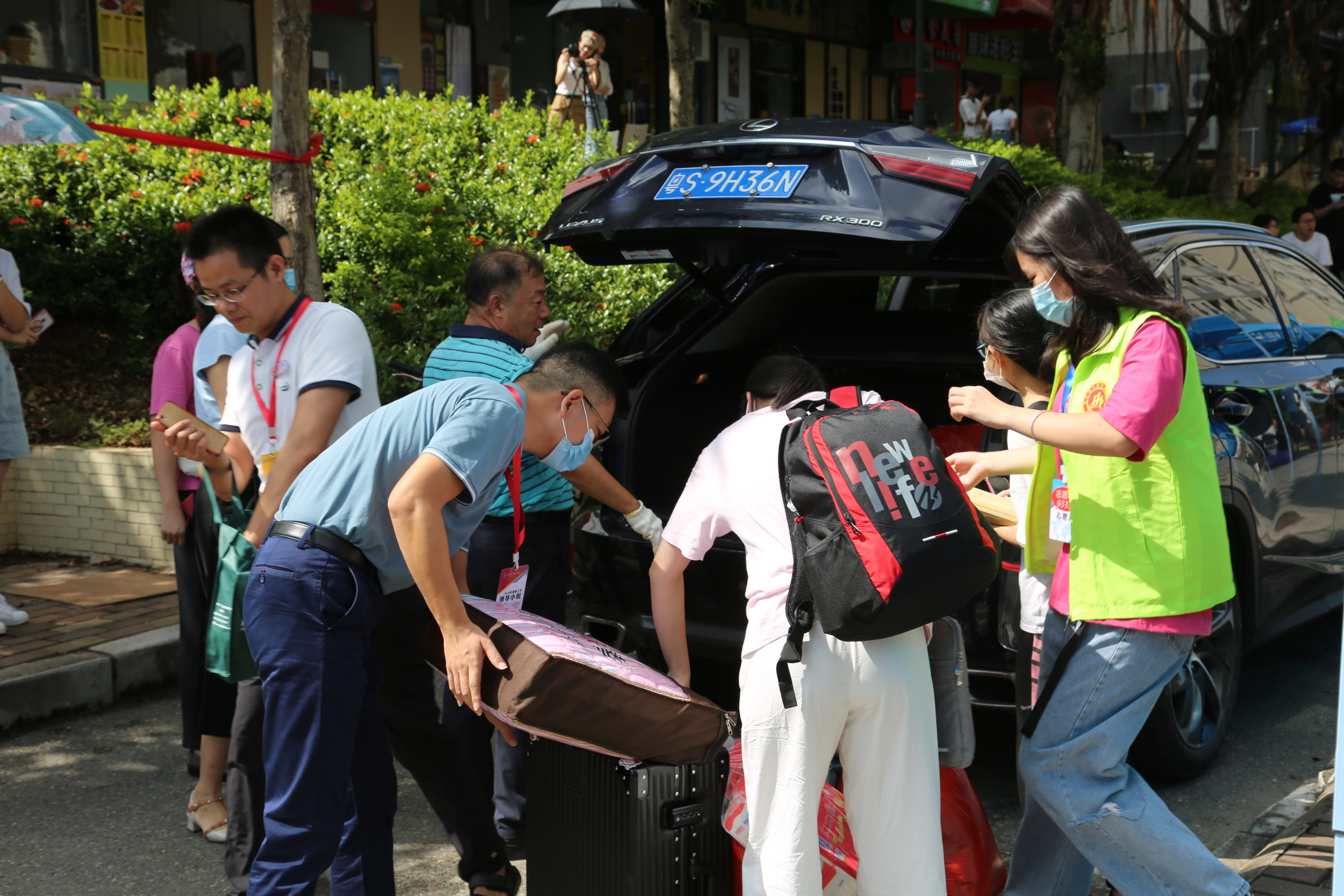 在迎接新生入学中,还有一群人,他们是学校的教职员工。由于家长不能进入到学校,家长的私家车也不能进入。学校教职员工看到大门口有许多学生在等待绿色大巴车,便用自己的车来“拉活”,及时帮助学生运送行李。学校党政办公室的黄志明、廖林兵等多次帮学生拉行李,把学生的行李箱、生活用品放在后备箱,及时把学生送到宿舍报到区,往返多趟。新生们知道后,都纷纷感谢,几位老师都说不用谢。他们表示“来到了城院,就是城院人”,深深地体现了“城院一家人”的情怀。