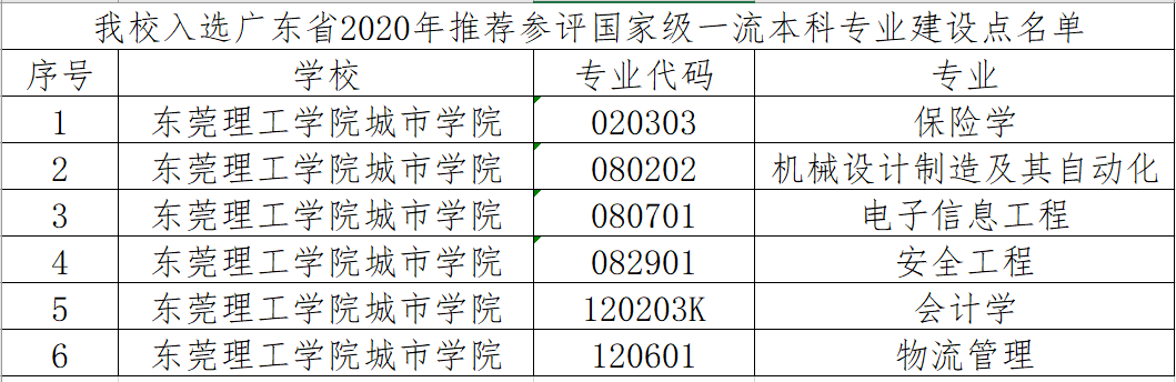 据广东省《关于2020年推荐参评国家级一流本科专业建设点名单的公示》,我省417个普通本科专业参评2020年国家级一流本科专业建设点。其中,米兰milan保险学、机械设计制造及其自动化、电子信息工程、安全工程、物流管理、会计学等6个专业入选此名单。