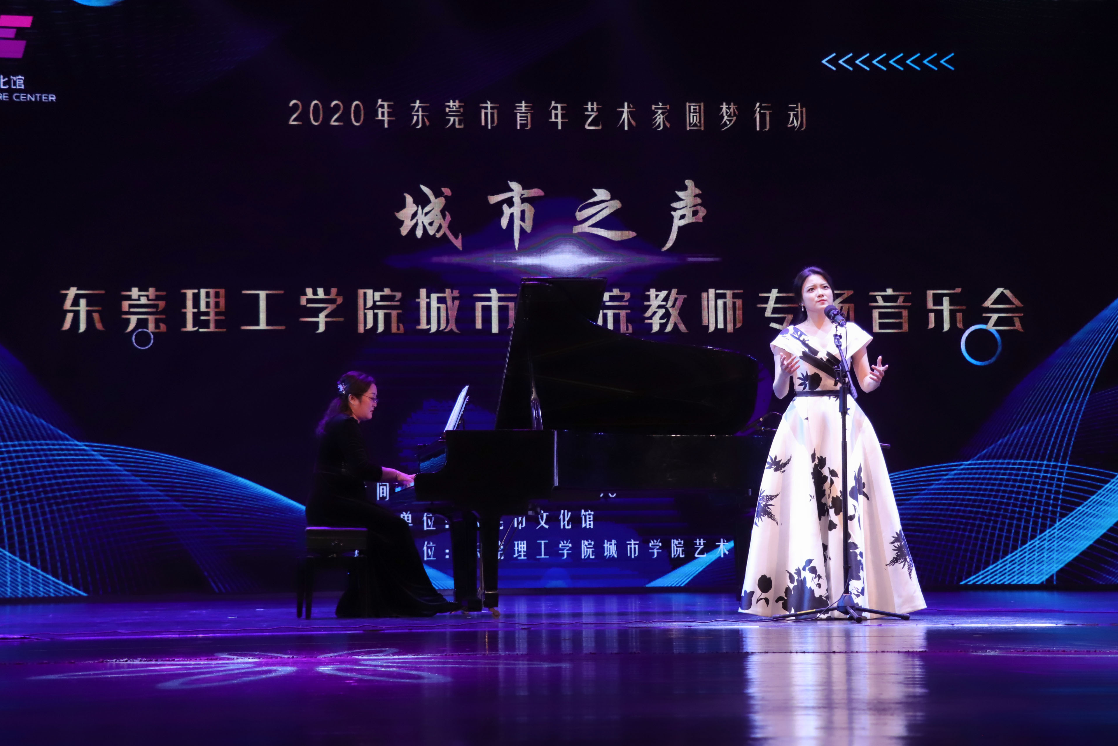 本次“城市之声-东莞理工学院城市学院教师专场音乐会”由来自艺术学院音乐表演专业声乐、钢琴、中提琴、古筝的各专业方向19位老师的联袂献艺,自导自演通力合作的一场音乐会,同时也是东莞青年艺术家圆梦行动的组成部分。