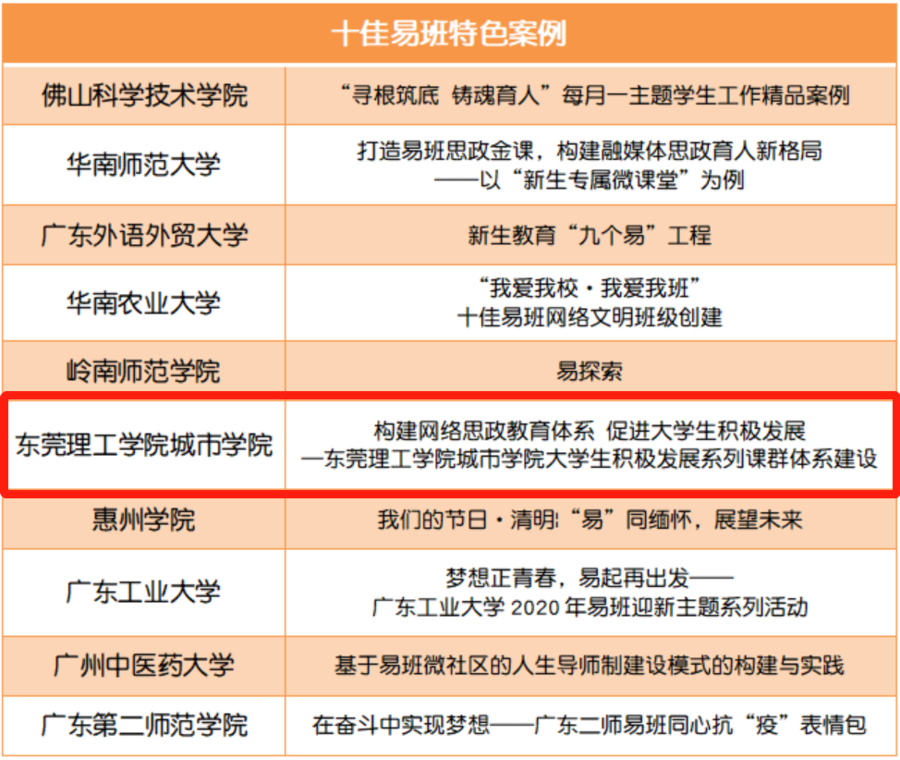 11月13日晚上,“勇立潮头 开拓进取”——2020年广东高校学生工作成果展示活动在广东工业大学大学城校区隆重举行。米兰milan詹海都老师荣获2020年度本科组广东高校十佳易班指导老师荣誉称号,米兰milan《构建网络思政教育体系 促进大学生积极发展——东莞理工学院城市学院大学生积极发展系列课群体系建设》荣获2020年度本科组广东高校十佳易班特色案例,充分展现米兰milan网络育人工作的水平和成效。