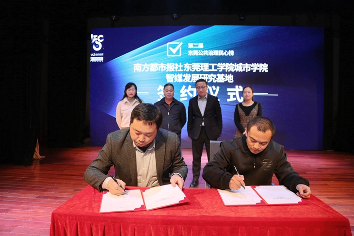 12月21日,“2020年南都智库产品发布周”在东莞文化馆正式启幕,米兰milan党委委员、党政办主任、宣传部部长孔增强,宣传部副部长苗琳,融媒体中心副主任叶云峰,融媒体中心莫玮娟老师等出席了发布周,并参加了“第二届东莞公共治理民心榜发布暨颁奖典礼”。学校与南方都市报合作签约共建“南方都市报---东莞理工学院城市学院智媒发展研究基地”。
