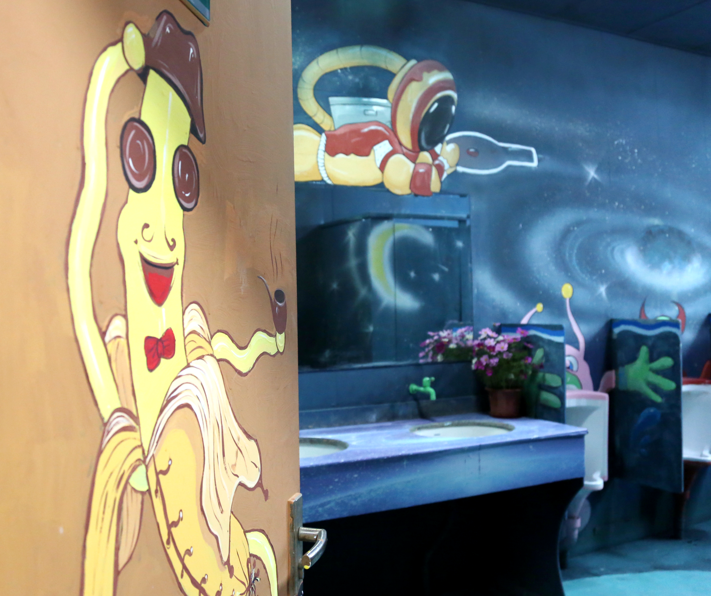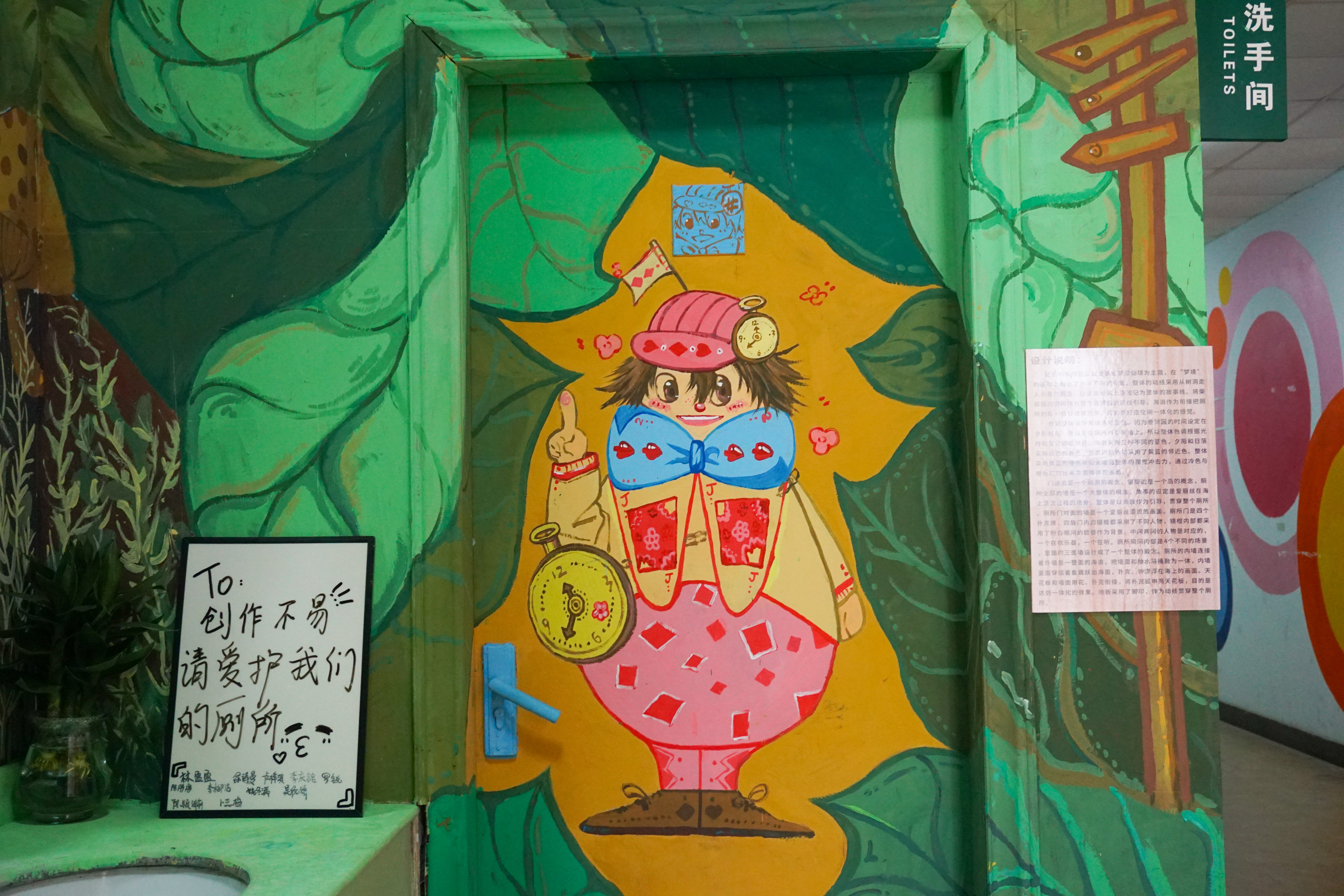 学校一直以来高度重视美育教育,创意设计学院从视觉传达、工业设计、数字媒体等专业角度加强人文素养和美育培养,充分发挥美育的文化建构功能,在课程教学、作品呈现中,挖掘民族、地域的文化理念、审美理想、审美趣味,通过这种形象化的感染作用,使受教育者体验、领悟到一个民族或地域的文化内蕴。本次“香博园”装置艺术美化提升从传统图形全新塑造、东莞本土文化孕育、童话故事再现等角度,以创新的表现形式营造场景氛围,形成4个不同风格的卫生间艺术作品,一改传统意义上的固定印象,积累审美印象,发挥润物无声的育人功效,受到广大师生的赞许。