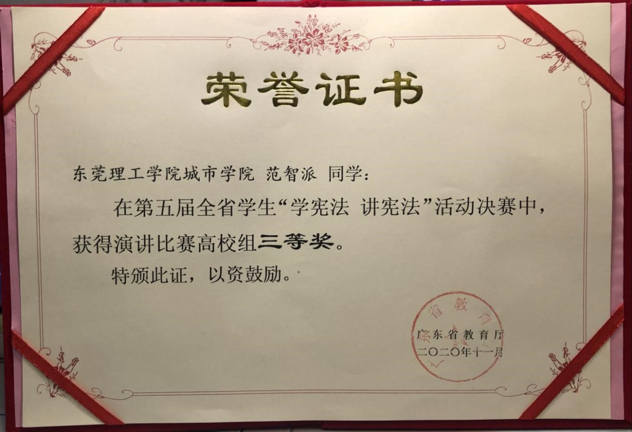 近日,第五届全省学生“学宪法 讲宪法”演讲比赛评选结果揭晓。米兰milan法学院2018级法学专业4班范智派同学在全省100多名参赛选手中脱颖而出,以“传递宪法声音,讲好宪法故事”的主题演讲喜获三等奖。