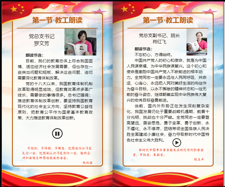 《读原著学原文悟原理——学习<习近平谈治国理政(第三卷)>学习分享》电子书打破了“闭门学习”的旧思路,加强师生党员间的交流,将师生党支部紧密联系在一起。本次学习将师生党员学习《习近平谈治国理政(第三卷)》的情况、朗读分享和精句分享、心得分享汇编成册,以有声电子书的形式将《习近平谈治国理政(第三卷)》的精髓要义传递给全院师生,形成“人人学,主动学,分享学”的良好局面,为全院师生学习《习近平谈治国理政(第三卷)》营造了良好的学习氛围。