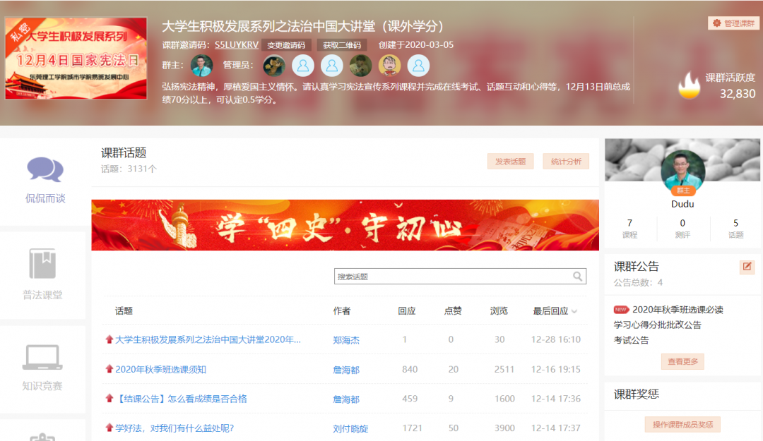 经过学校易班发展中心和易班工作团队的共同努力,目前学校拥有易班优课课群797个,易班优课公共课程18门,其中优质教学资源1个;2019年学校易班优课教学活跃度增量跻身全国第6名,成为“互联网+思政教学”全国十强高校之一。2020年3月,学校抗击新冠专题课群入选全国优秀教学课群宣传案例,获评全国抗击新冠病毒相关知识科普优秀课群,是广东省唯一入选的高校。2020年11月,大学生积极发展系列课外学分课群体系建设获评2020年度广东高校十佳特色案例,詹海都老师荣获2020年度广东高校十佳易班指导教师。2020年12月学校易班迎新案例获评广东省十佳易班迎新案例并入选2020年全国优秀迎新案例展示。