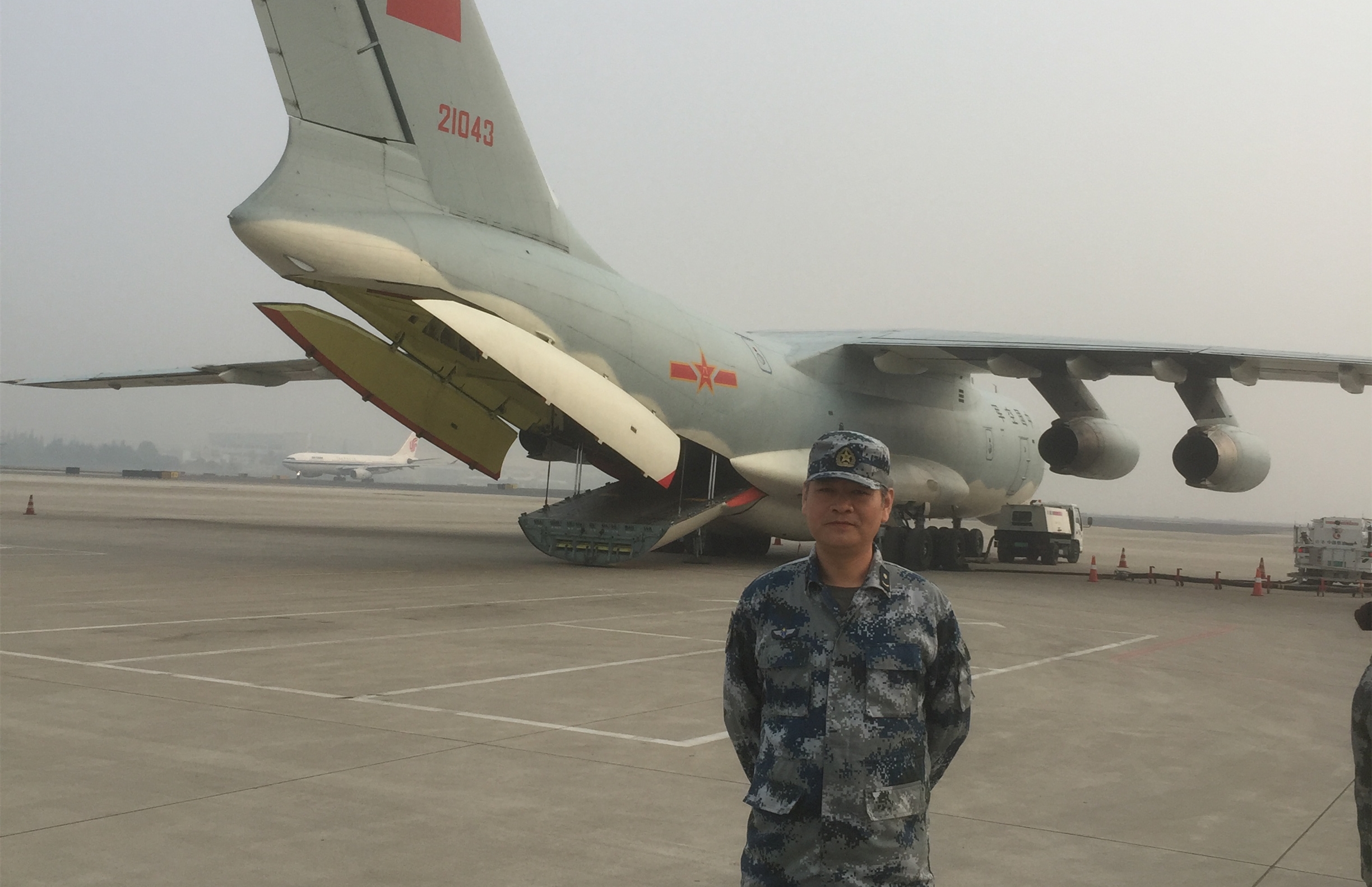 2015年4月25号,尼泊尔发生8.1级地震,伤亡严重。尼泊尔首都加德满都90%的老旧房屋倒塌,名胜古迹遭到破坏,死亡人数超8000人。我国第一时间启动救援工作,由空军执行救援人员和物资的空运任务。他作为前方联络组成员参与空运任务。