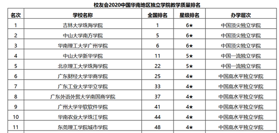 全国独立学院教学质量排名:全国第48位,华南第11位
