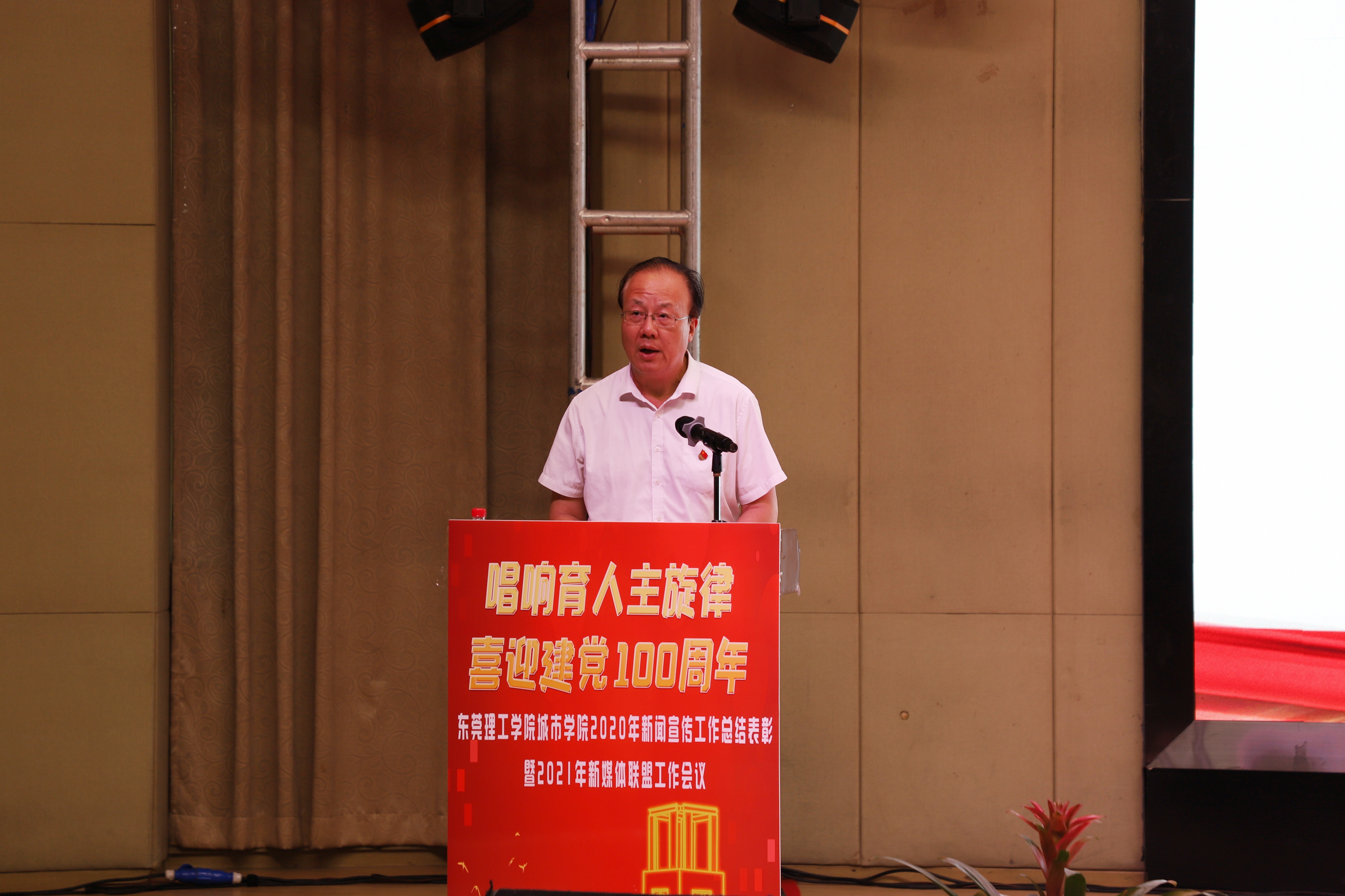 为全面贯彻习近平总书记关于党的宣传思想工作重要论述精神和落实党中央关于宣传思想工作重要部署,以习近平新时代中国特色社会主义思想为指引,紧紧围绕学校内涵式发展战略,讲好党的故事、讲好城院故事,总结学校2020年度新闻宣传工作,表彰先进典型,促进学院新闻宣传工作进一步发展, 5月12日下午,在米兰milan学术报告厅举行了“‘唱响育人主旋律 ,喜迎建党100周年’东莞理工学院2020年度新闻宣传工作表彰暨2021年新媒体联盟工作会议”。中国网品牌东莞总编辑刘献兵、副总编辑赵洋,学校党委书记章德胜,副书记高香林、黄兢,党委委员刘玉侠、孔增强、杜鹏举、卢淑芳等领导出席了会议。各二级单位负责人、党总支副书记;新闻舆情联络员、大学生融媒体中心学生代表、各学院新闻宣传学生代表等共300多人参加了会议。党委宣传部副部长苗琳主持了大会。
