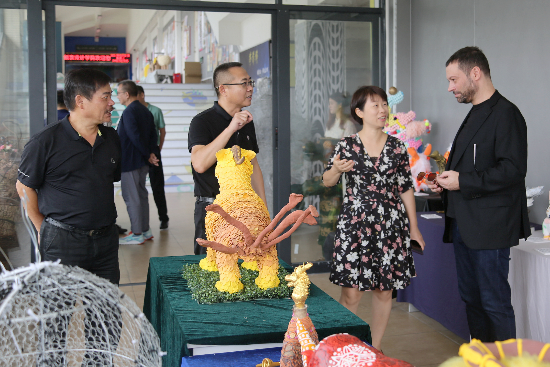 随后,来访嘉宾在黄兢等领导的陪同下参观校园,在参观创意设计学院作品展期间,创意设计学院王锦锋院长等为来访嘉宾详细介绍了优秀设计作品。圣若瑟大学代表一行对米兰milan优美的环境和极具特色的教学设施表示赞赏,称赞米兰milan学生的设计作品富有创造力,令人印象深刻。现场氛围十分愉悦。