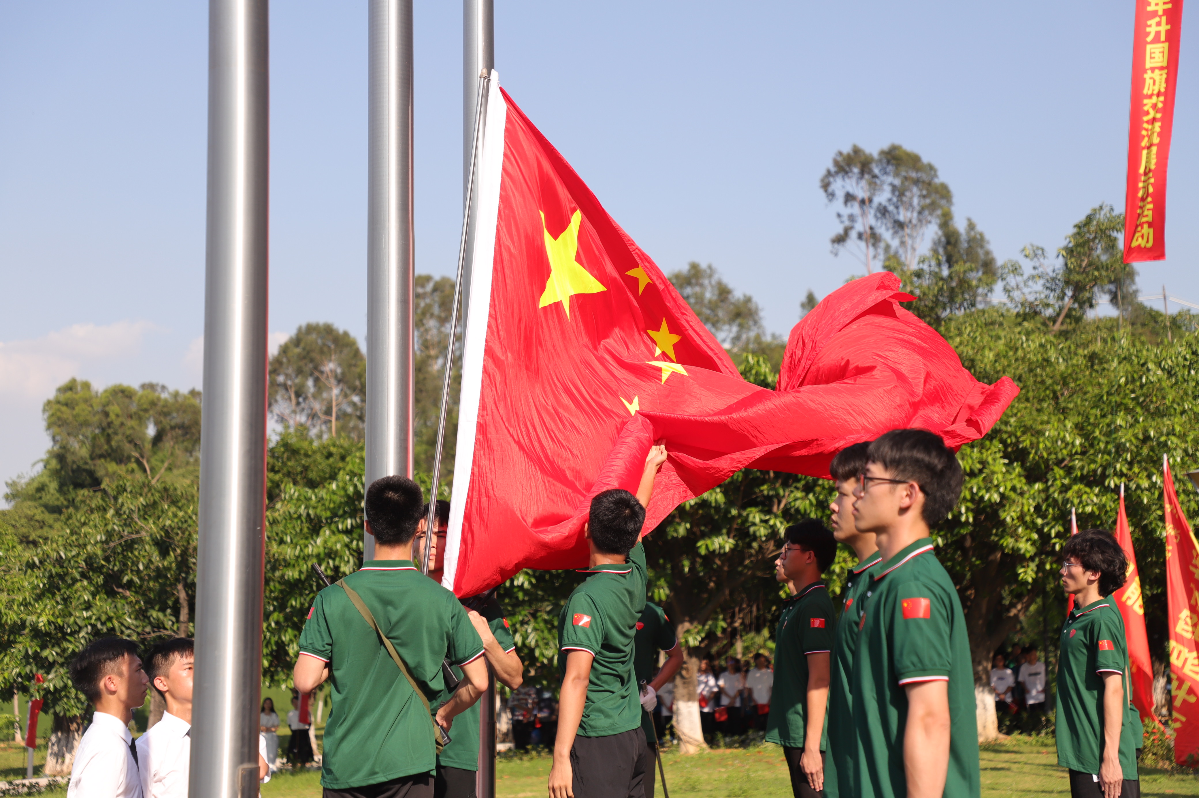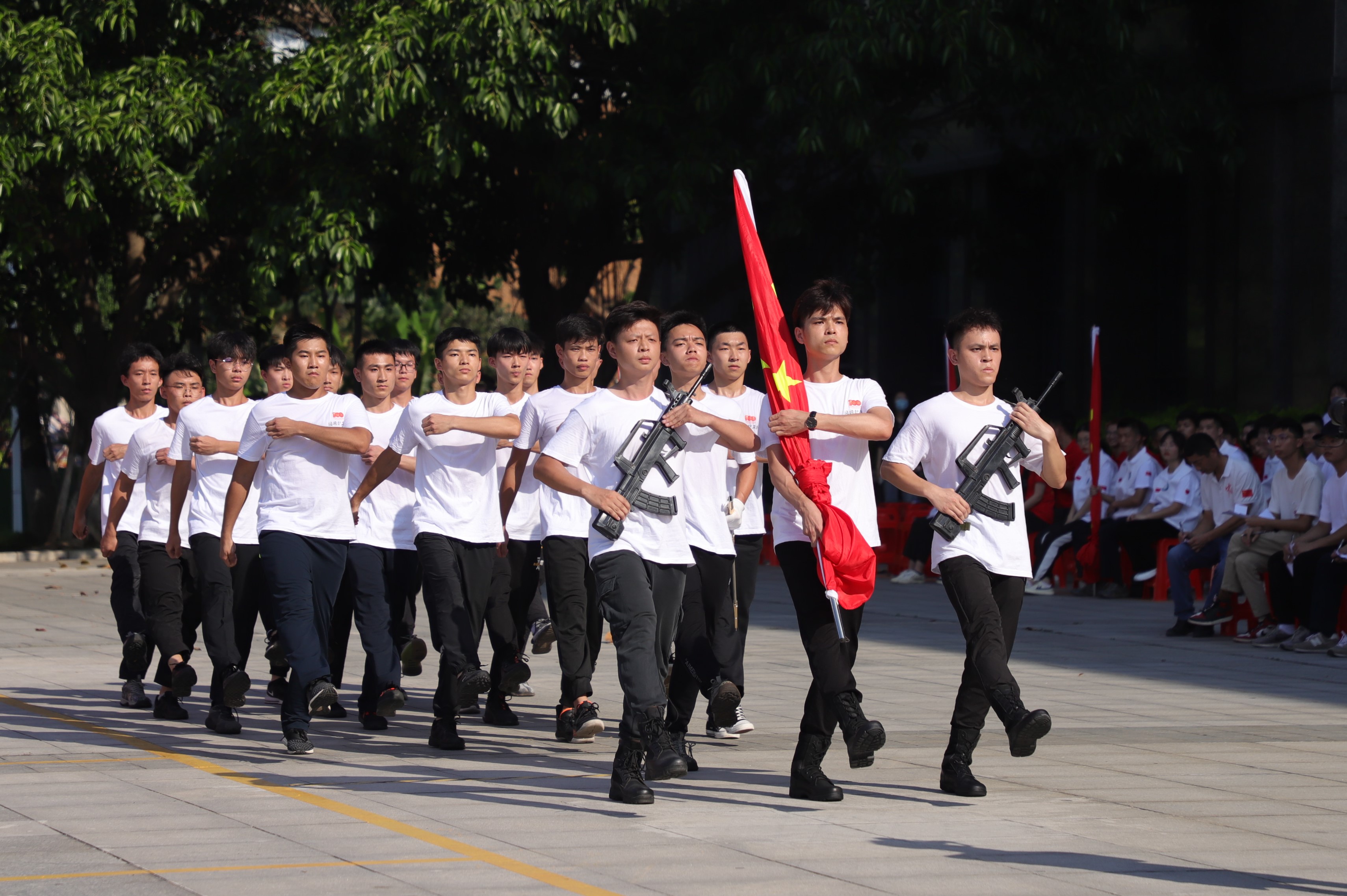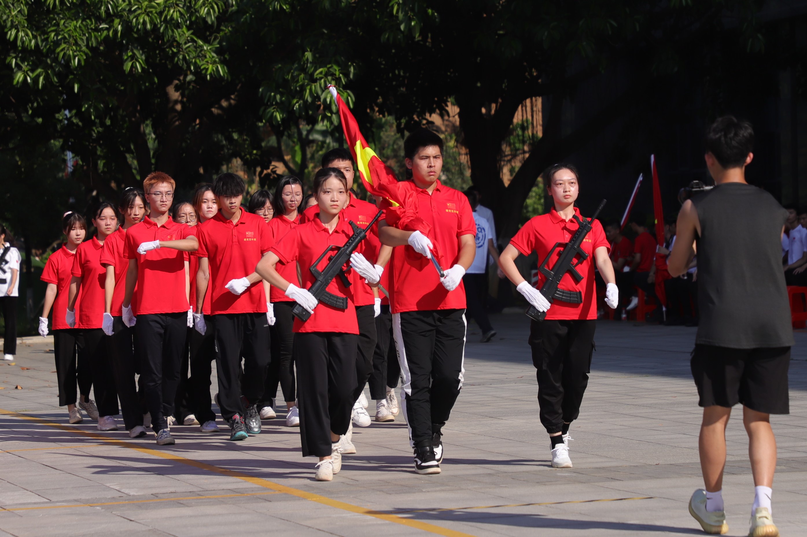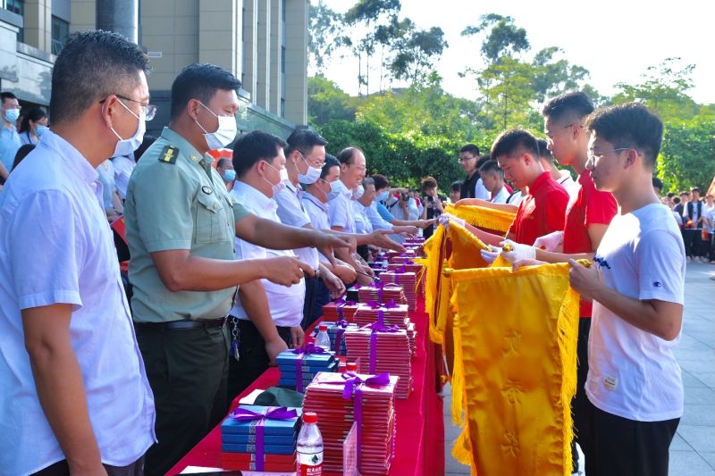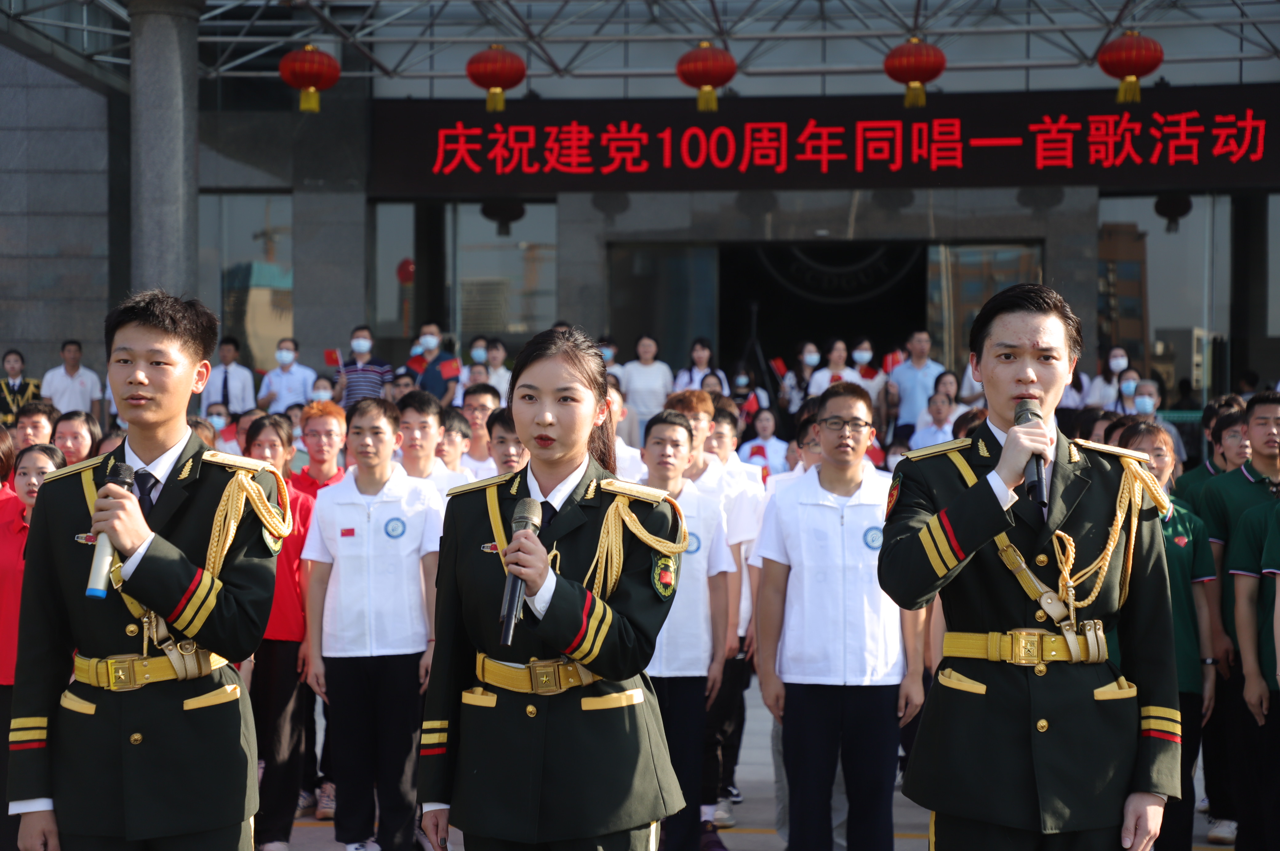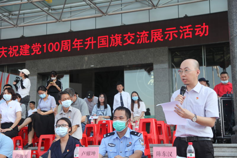6月3日下午,学校在行政楼前举行庆祝建党100周年“升国旗交流展示暨同唱一首歌”活动。寮步镇退役军人服务中心副主任李敏怡、鸿发教育集团副总经理李奎山、寮步退役军人服务中心文拥军、泉塘派出所警长卢耀坤、寮步镇人民武装部干事尹锐新。学校党委书记章德胜,党委副书记、校长王卫平,党委副书记、副校长高香林、黄兢,副校长周庆、刘玉侠,各相关单位负责人、各党总支(直属支部)书记、副书记全校师生近四百人参加。武装部副部长刘维仝主持会议。