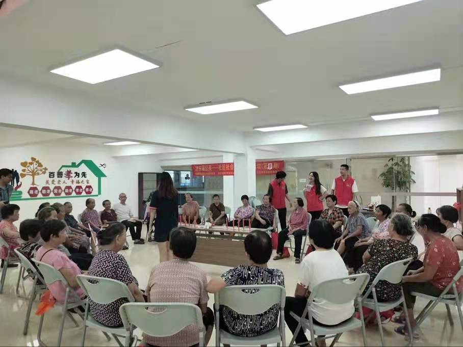艺术学院分队积极准备,分为多支小队参加志愿活动,一队组织长者签到记录和准备活动所需要的小道具;一队配合社区服务,帮助打扫厨房和洗菜等;一队采访霞边社区的老党员,老党员回忆起战天斗地的光荣往事,强调作为一名合格党员的使命与担当,言语中满满的是对当代大学生的期待与勉励。志愿队精心编排的日常生活防诈骗的小品,让爷爷奶奶们在欢乐声中,丰富了防诈防骗新知识。