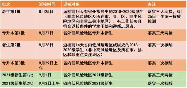 备注:具体返校名单和批次由各学院通知,继续教育学院学生由继续教育学院学工另行通知。