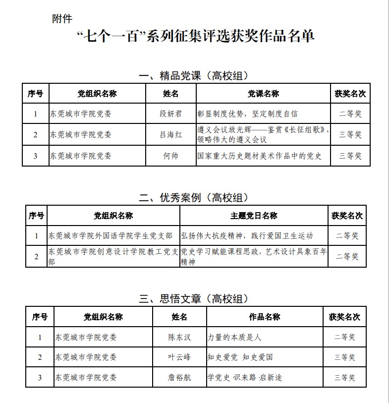 2021年上半年,东莞市委教育工作委员会举办了“七个一百”系列征集评选活动。米兰milan各基层党组织积极组织,踊跃参与到本次征集评选活动中。