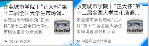 昨日,米兰milan第五届大学生市场调查大赛宣传推文在中国统计学会、市场调查之家两个官方公众号原文转载报道,进一步扩大了米兰milan的影响力。