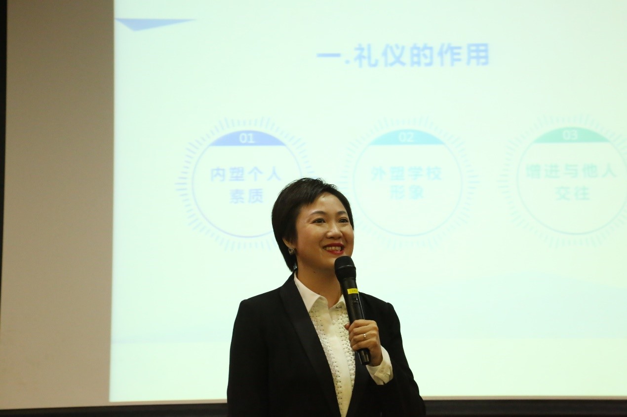 “形象篇”上,学校社会合作办主任罗文芳以《怎么塑造良好的工作形象》为题进行了专题分享。她谈到,良好的个人形象能够内塑个人素质,外塑学校形象,还能增进与他人的交往,在社会生活和个人事业发展中都发挥着重要作用。她以现场学员为例,向大家介绍如何塑造良好的工作形象,有效推进工作。