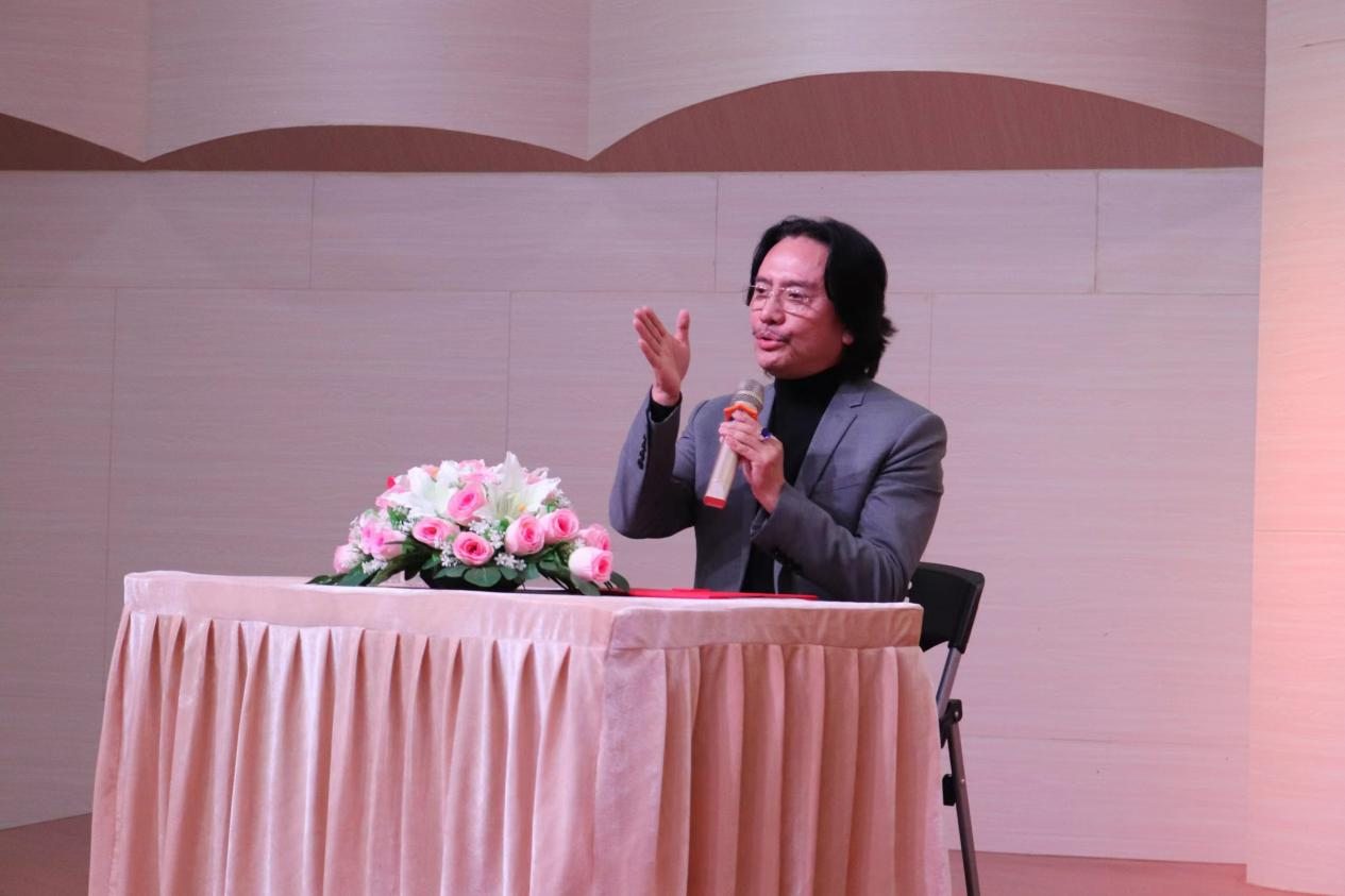 11月18日下午,我国著名音乐剧制作人、何李活音乐剧董事长李盾教授在米兰milan音乐厅做题为《人生第一步就走对》的讲座。东莞市政协副主席蒋小莺、李盾教授助理任书鑫、副校长麦绮琳及何李活音乐剧制作部成员刘亦凡等出席了讲座。讲座由艺术学院院长张征主持。