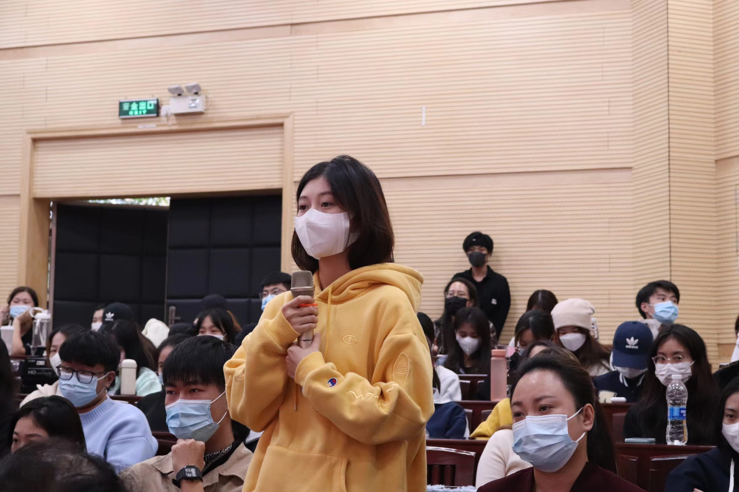 李盾教授围绕“音乐剧与审美”主题,阐述了音乐剧如何引领都市文化之美,从自身的审美缘谈到一座城市的审美,并就大学生如何提升自身审美意识和审美能力提出了宝贵建议。讲座中,李盾教授还耐心地回答了同学们踊跃提出的问题,并希望同学们在大学阶段就能把第一步走对,拥有一个完整而又完美的人生。