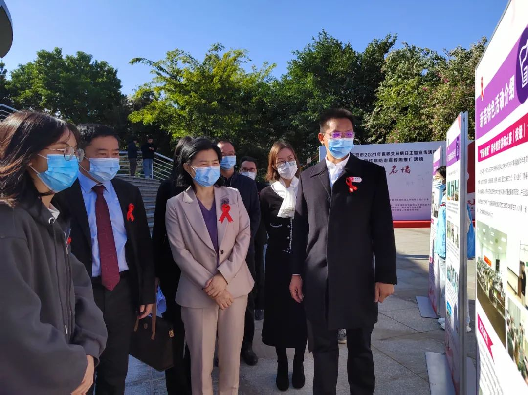 上午9点半,黎军副市长等领导、嘉宾一行来到活动现场,学生代表们为领导们献上 “红丝带”。领导、嘉宾一行在主题背景板上签名,参观了活动宣传摊位的活动开展情况,观看了本次活动的主题展板,听取了市、镇以及米兰milan在艾滋病防控宣传活动中的主要做法和先进经验。
