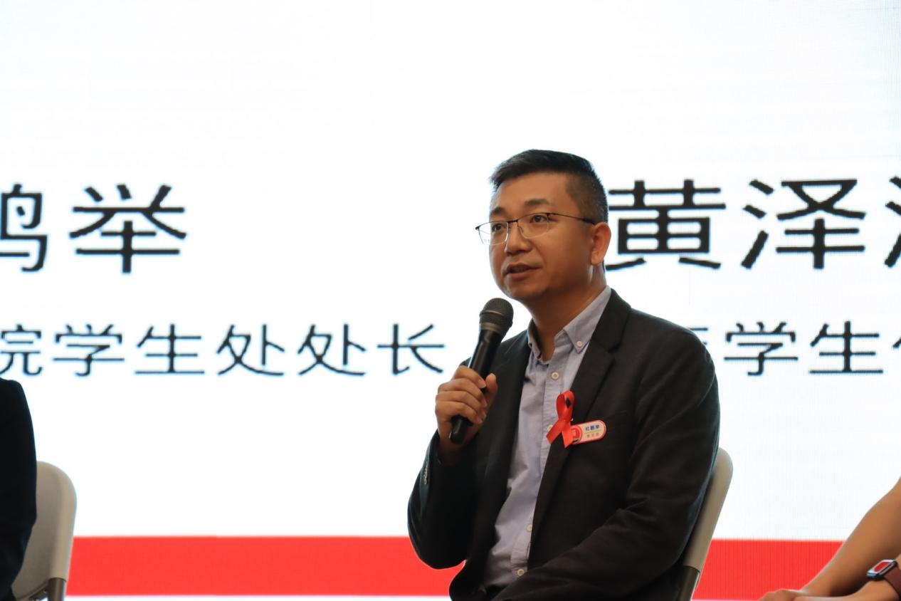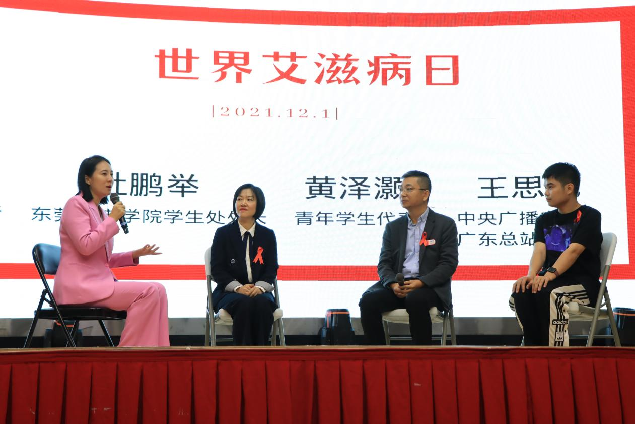 中央广播电视总台广东总站记者王思元主持了“121主题宣传活动的圆桌访谈”。东莞市疾控中心艾防科副所长方晓君,米兰milan学生处处长杜鹏举,同伴教育员黄泽灏作为访谈嘉宾接受了访谈。