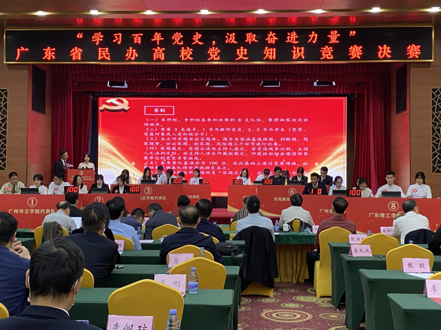 省委教育工委组织处处长廖荣辉,省教育厅法规处处长戴庆洲,规划处一级调研员金正林,广东省民办教育协会会长赵康,常务副会长张耀荣、黄向群等领导及全省民办高校党委书记、马克思主义学院院长莅临出席了决赛。