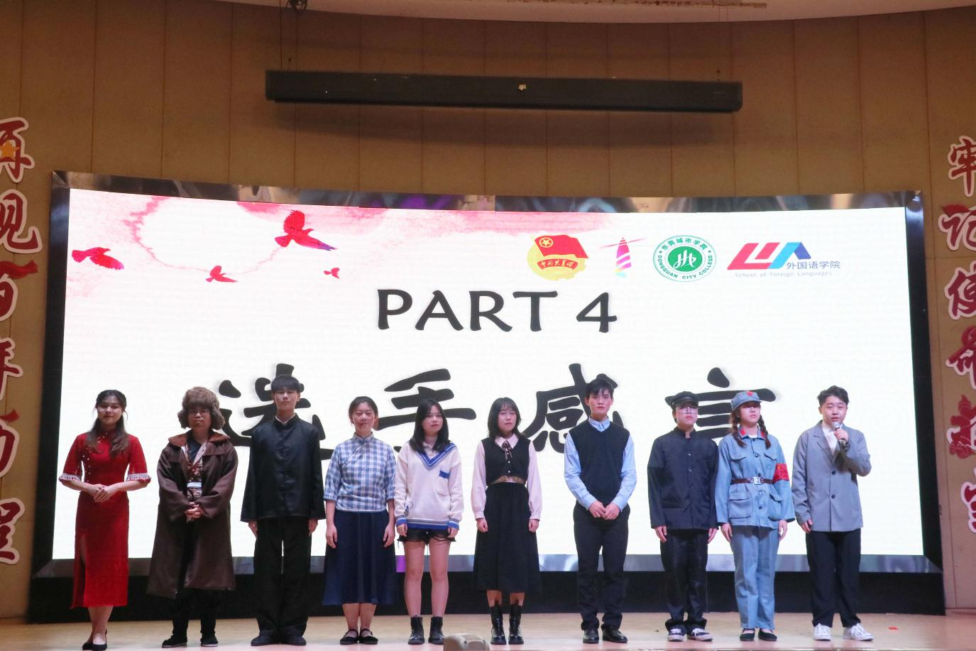 意犹未尽、精彩绝伦的比赛过程中,选手们以华丽精美的着装,设计巧妙的道具,或严肃或温情的演出,赢得了评委和全场观众雷鸣般的掌声。比赛接近尾声,李玲玲老师和陈伊航老师分别点评此次比赛。李玲玲老师首先赞扬了参赛选手们精彩的演出,并表示十分享受本次戏剧表演,同时,她希望同学们学好英语,让世界听见中国的声音。陈伊航老师也从语言语音、情绪状态、舞台呈现方面对各参赛小组的精彩演出作出了极大肯定。
