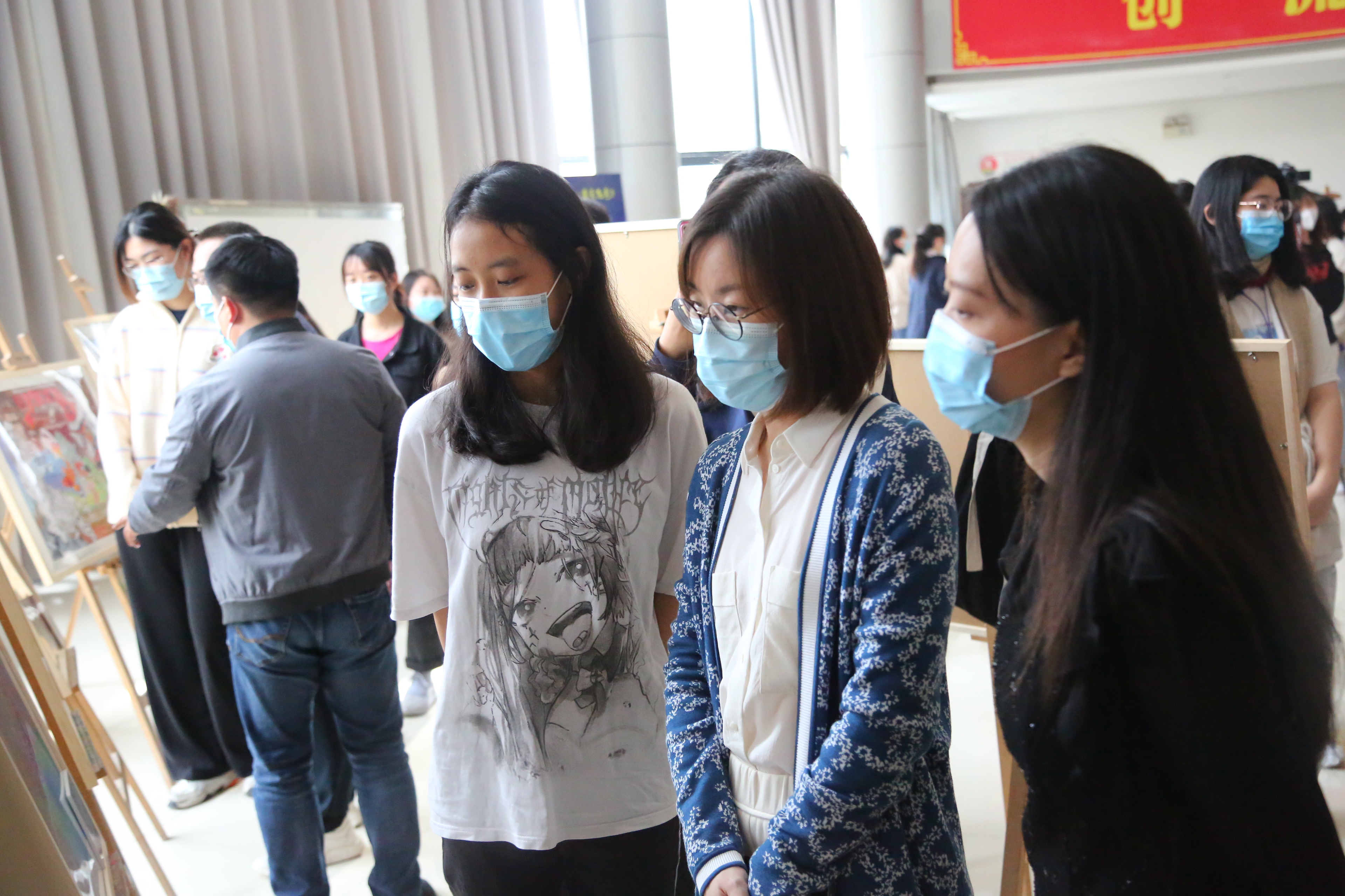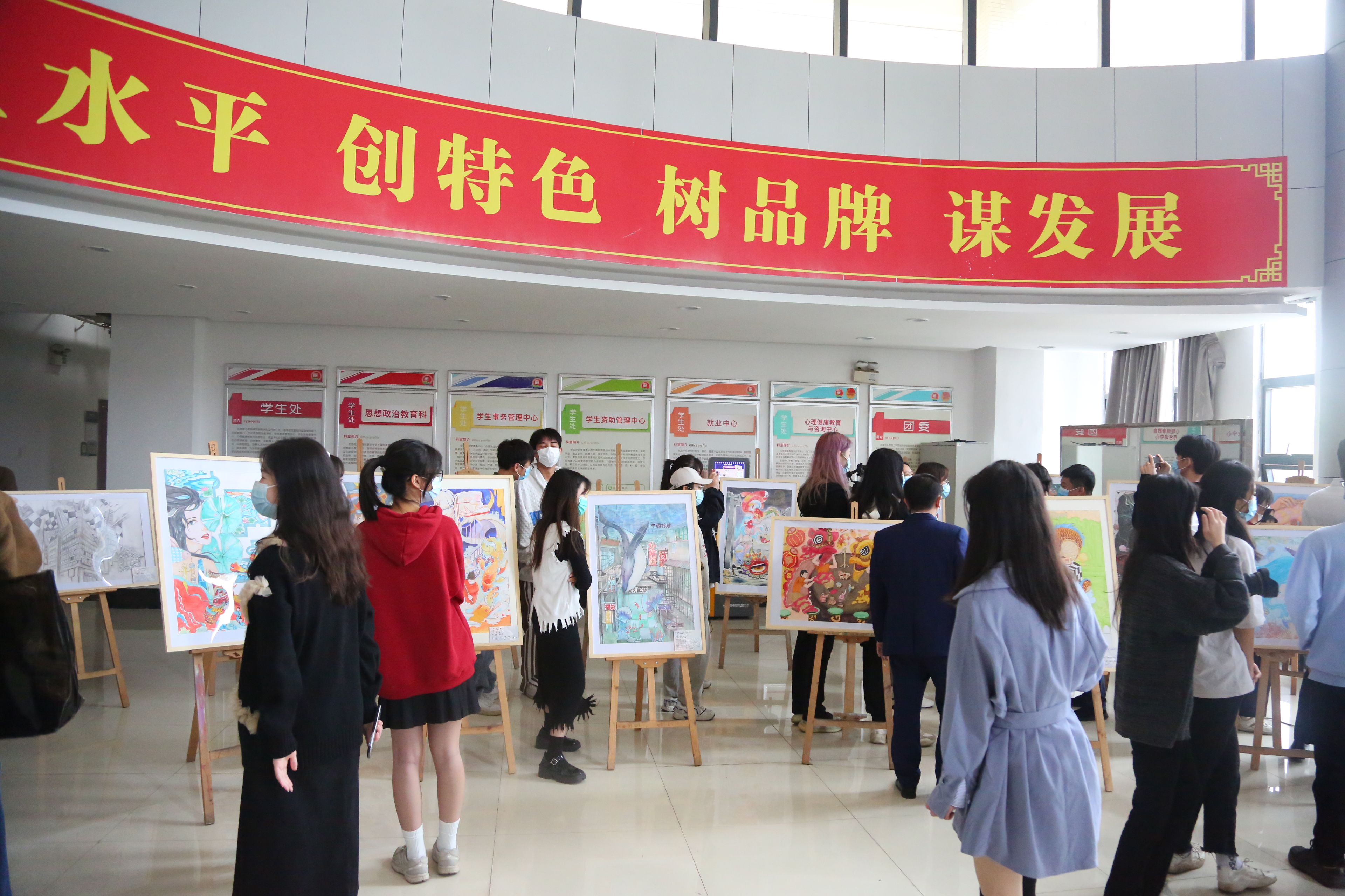 麦绮琳副校长一边参观展览,一边与同学们深入交流,听取他们对作品内涵的阐释和创作过程的解析。她称赞广大学子能从日常生活的角度出发,透过想象叙事,并结合多元与创意的手绘表现技法,用创意作品讲好中国文化中的“黄河故事”“敦煌故事”,在美的赏析中,延续了历史文脉,坚定了文化自信。