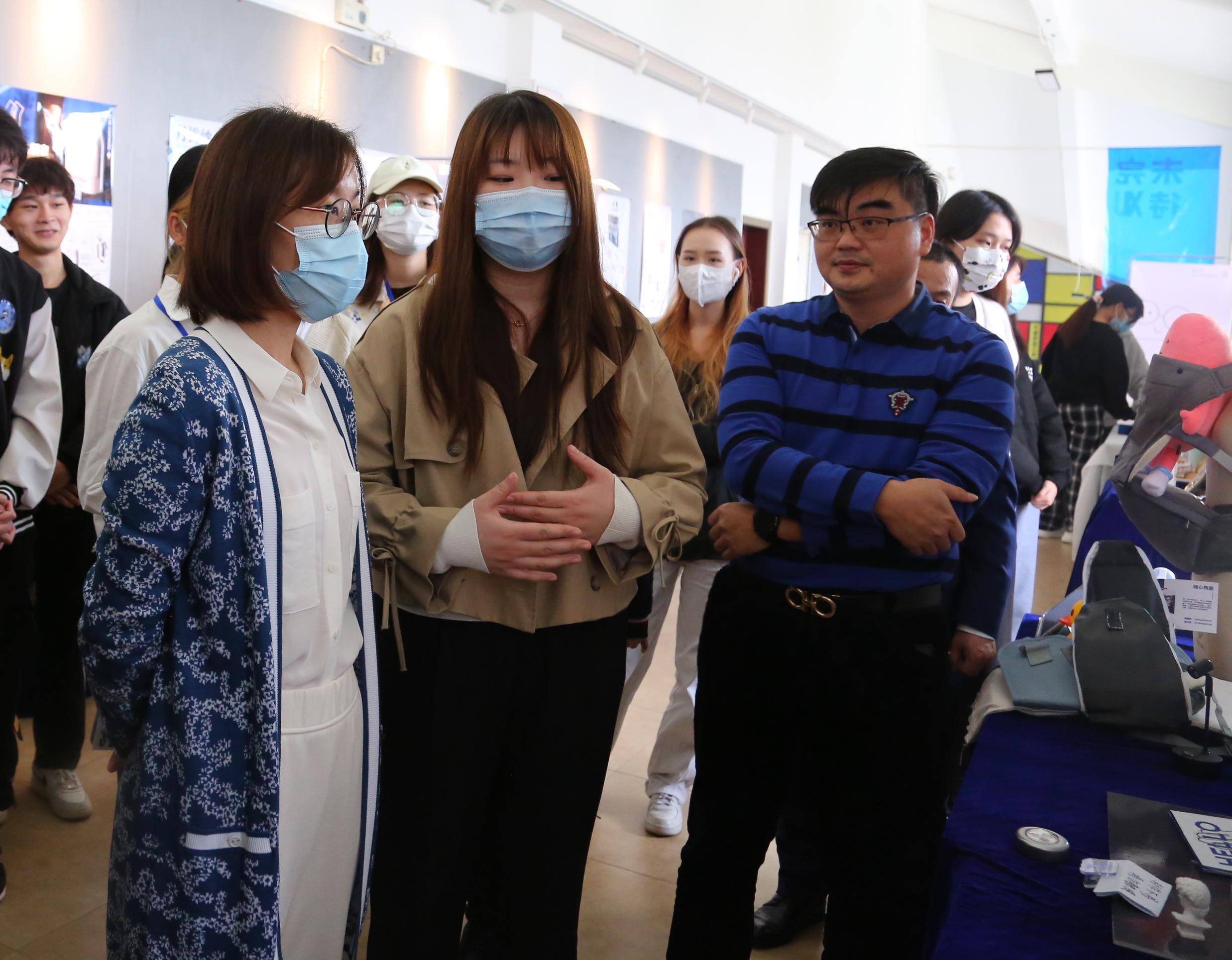 麦绮琳副校长在参观中听取学生们介绍产品设计构想以及交互设计理念后,对学生在作品所表现出的对生活中“痛点”的理解、对人们需求的发现以及对未来工作与生活的思考给予充分肯定,称赞学生作品中表现出来的创新创意,鼓励广大学子学以致用、知行合一、不断完善学生作品,真正在市场上进行检验,进一步扩大学校专业的影响力和品牌声誉。