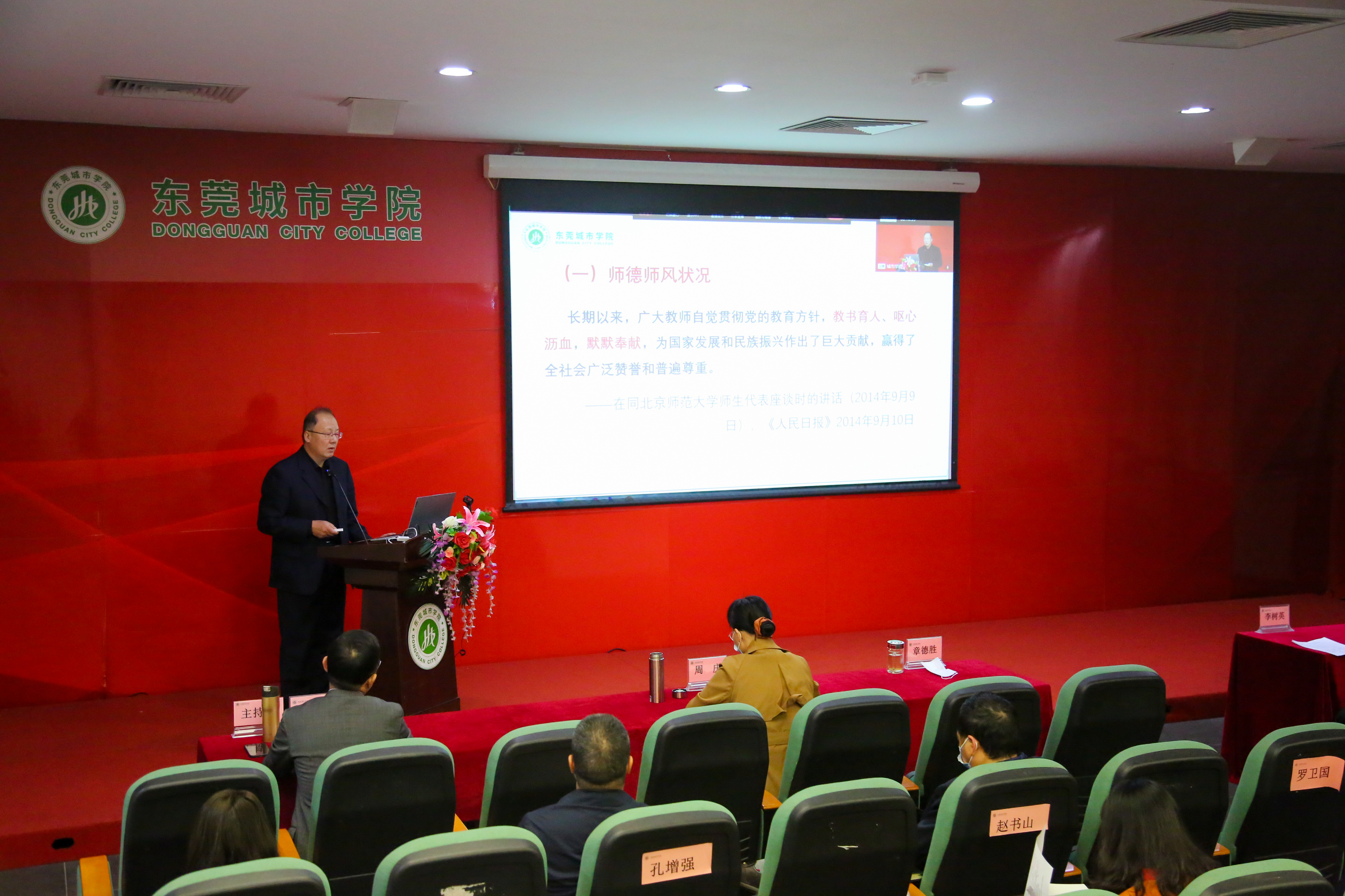 党委书记章德胜以“学习践行新时代高校师德规范”为题,从习近平总书记关于师德师风的论述,践行新时代高校教师职业行为十项准则,米兰milan师德师风建设三个方面作了报告。章德胜书记指出,党的十八大以来,以习近平同志为核心的党中央高度重视教育工作,高度重视教师工作,将教师队伍建设特别是师德师风建设提到了一个新的战略高度,多次在讲话中谈到师德师风的重要意义。章德胜书记从教师的价值维度、角色维度、对教师的要求维度分析了加强师德师风建设的原因。关于建设什么样的师德师风,章德胜书记指出要从理想信念、道德情操、扎实学识、仁爱之心、改革创新,终身学习的共性内容和教师“六要”的个性内容为主体的师德师风建设,并提出教育培养,教师自我修养、见贤思齐和科学评价的师德师风建设途径。