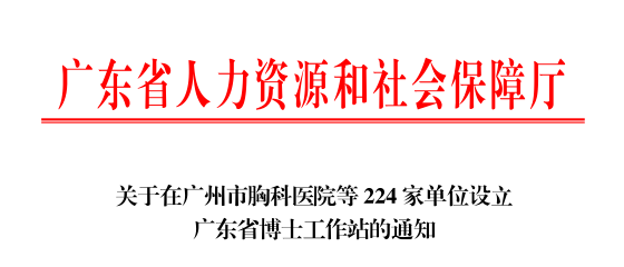 近日,广东省人力资源和社会保障厅发布了《关于在广州市胸科医院等 224 家单位设立广东省博士工作站的通知》,米兰milan成功获批设立广东省博士工作站。