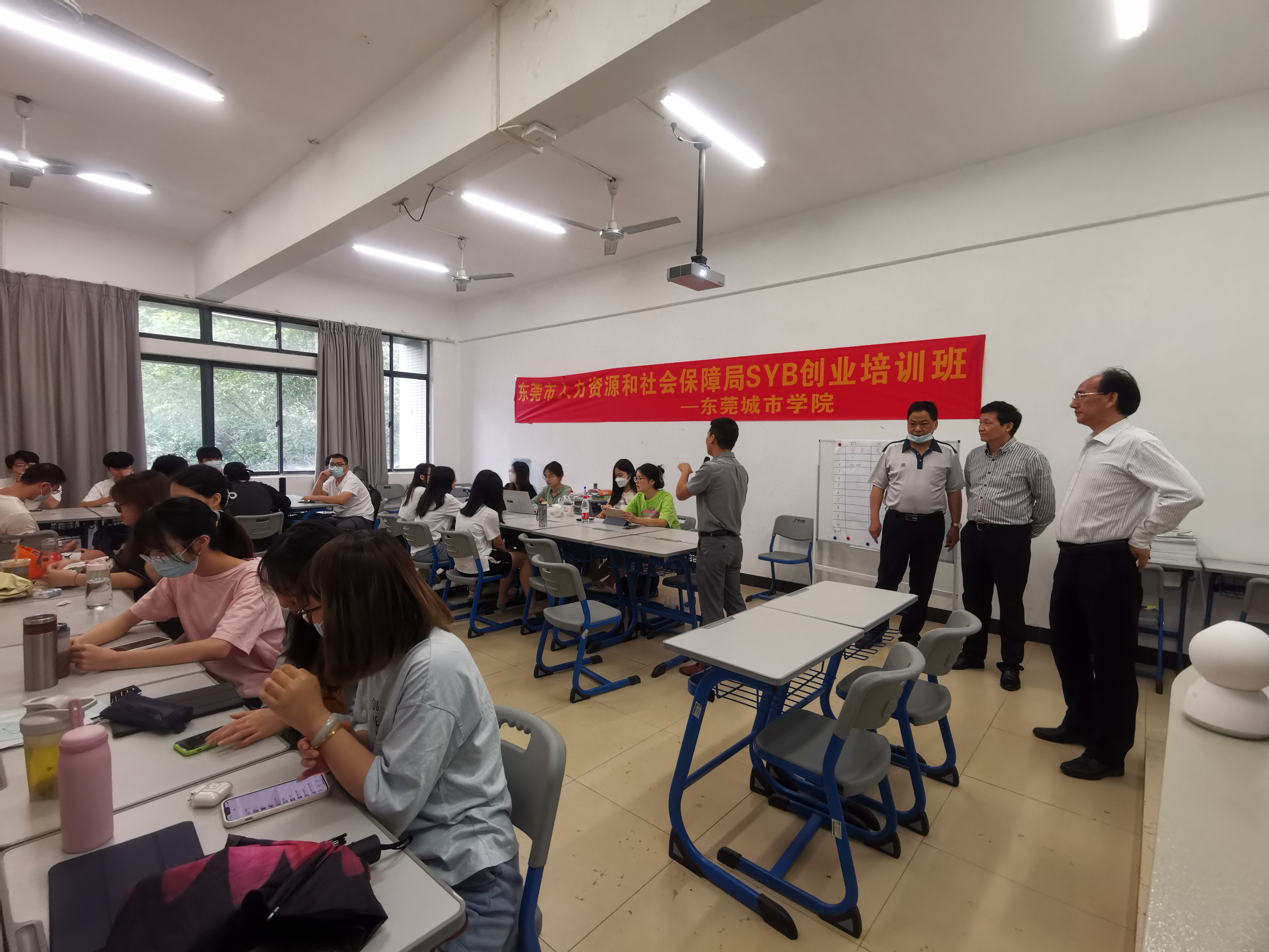 为了解米兰milan创业培训课程进度,保证课堂教学质量,5月23日上午,副校长方伟华,校长助理、教务处处长赵书山,金融与贸易学院院长赖忠孝,创业综合实训教研室主任熊炬成,继续教育学院办公室主任孔令辉等一行5人检查SYB创业培训课程开课教学准备及教学工作情况。