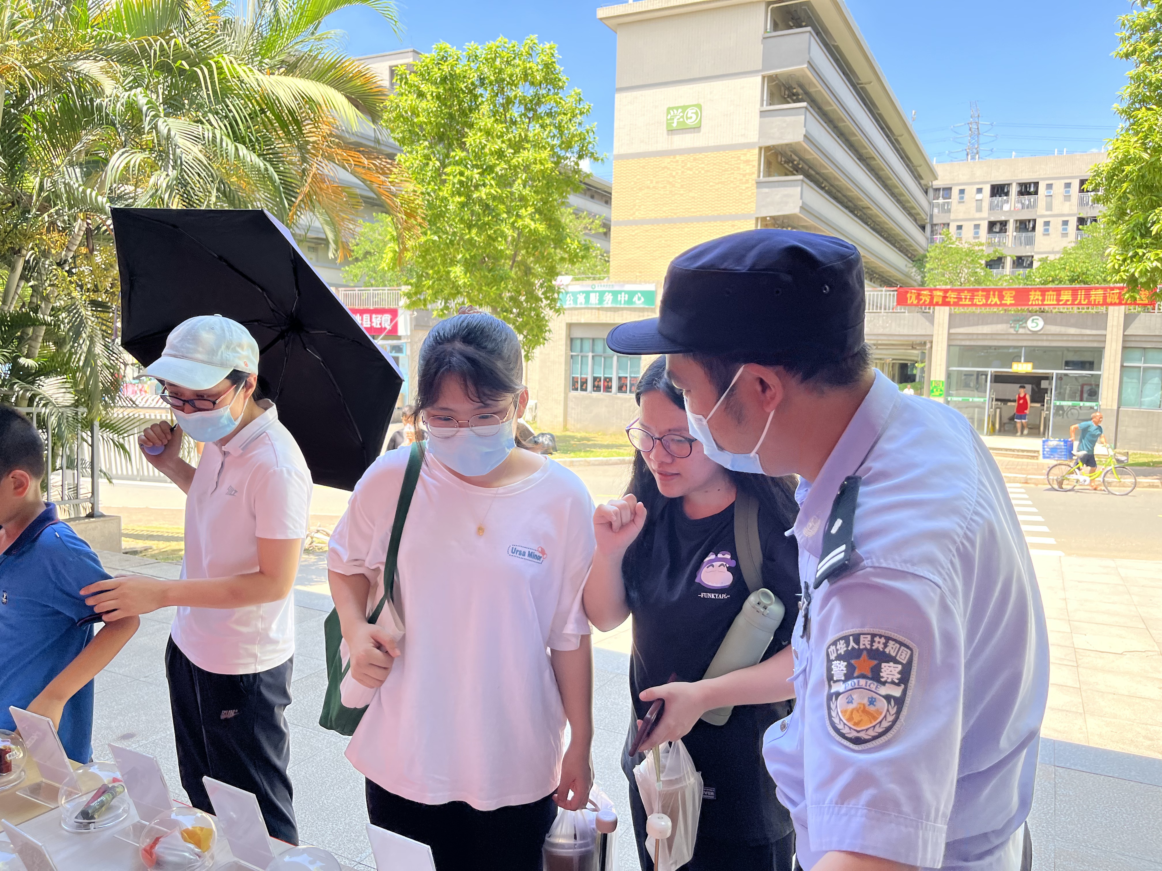 在宣传现场,寮步公安分局泉塘派出所卢耀坤警官通过样品图片为同学们讲解毒品类型、形状以及对大学生健康成长带来的巨大危害,同时为大家普及了新型毒品的辨别和预防方法,并强调:近年来我国吸毒人员逐渐呈现低龄化趋势,对青年大学生的毒品预防教育尤为重要。同学们认真听讲,仔细思考,就禁毒相关问题向卢警长进行询问,卢警长逐一解答,让同学们学到更多的禁毒知识,增强对毒品的认知、辨别、预防能力。